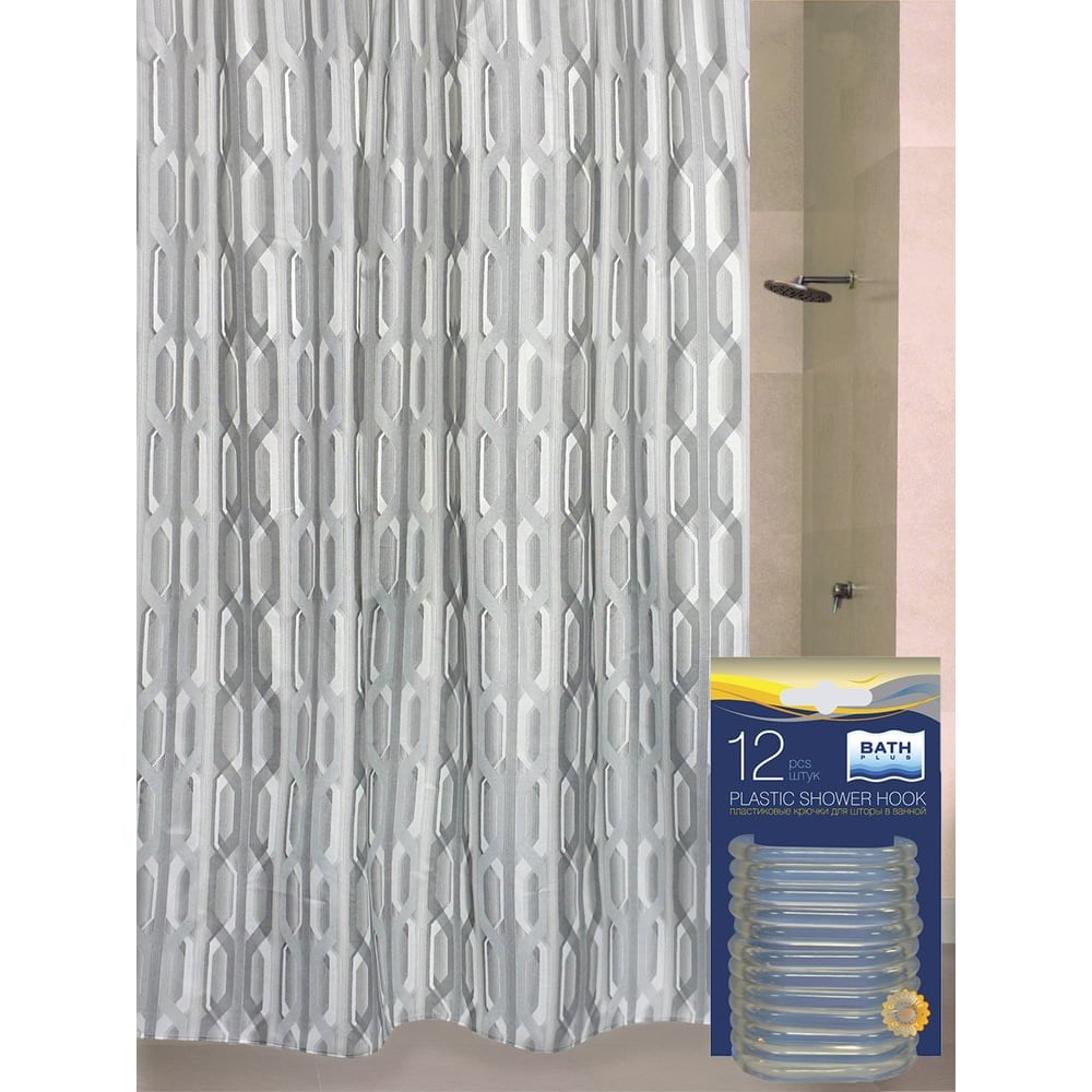 Комплект: штора для ванной и кольца Bath Plus Nordic1 grey akch1843 - штора сделана из 100% полиэстера, имеет водоотталкивающую пропитку, благодаря этому изделие долговечно и не требует особого ухода. Плотность шторки - 80 г на кв.м. Изделие можно стирать в стиральной машине при 30 градусов С на деликатном режиме и гладить. Данная штора также прекрасно подойдет в качестве занавески для душевой кабины.
