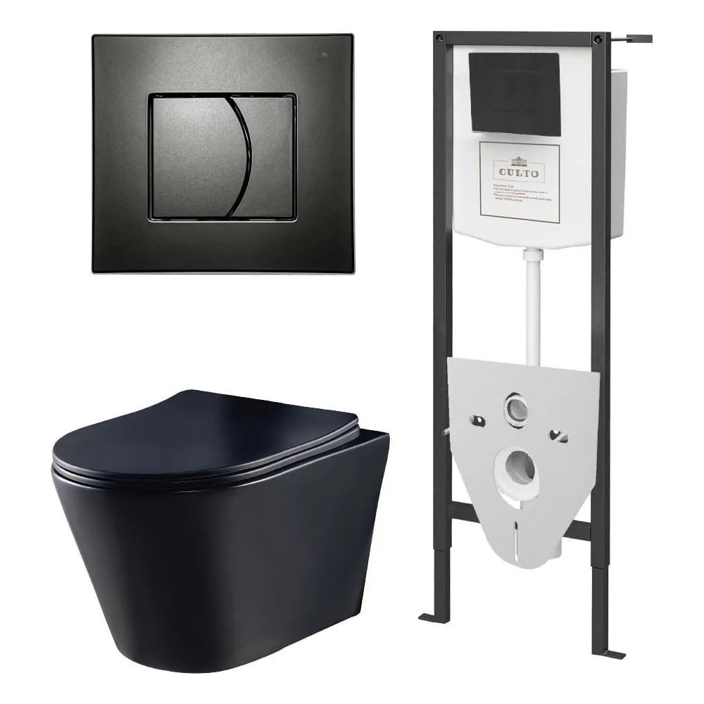 Инсталляция с подвесным унитазом CULTO MONET собрал в себе все самое лучшее. Плавные линии, запоминающийся дизайн, матовая фактура - вот отличительные особенности чаши унитаза MONET, в сочетании с рамной инсталляцией CULTO. Безобродковая чаша унитаза оснащена сиденьем из дюропласта с быстросъемным механизмом и идеальным дизайном Металлическая самонесущая рама инсталляции весом 12,5 кг – покрыта порошковым напылением, толщина металлического профиля – 30×40 мм, оцинкованные стальные опоры рамы с регулировкой высоты, крепления чаши унитаза от 32 до 56 см, универсальные крепления, с возможностью присоединения к неровным и боковым поверхностям, которые входят в заводскую комплектацию изделия. Система инсталляции выдерживает нагрузку до 400 кг, монтажная высота 1,15-1,39 м для гипсокартонных стен и встраивания в пристенки, крепления для подвесного унитаза с возможностью монтажа чаш с фиксаций крепежа на 18 или 23 см, монтажная глубина от 100 мм до 175 мм Материал изделия - Металл/АБС пластик/полиэтилен.