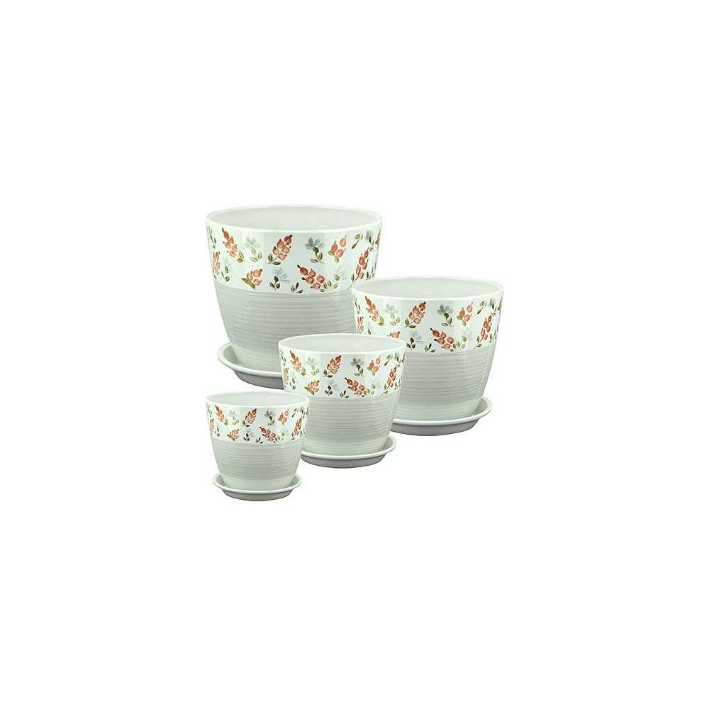 Комплект из 4‑х горшков Сады Аурики РС172 Роспись бутон керамика, 12 см, 1 л, 15 см, 2 л, 18 см, 4 л, 21 см, 5 л 067328 предназначен для выращивания комнатных растений. Горшки обладают декоративным внешним видом, благодаря чему подчеркнут красоту цветка. Изделия выполнены из керамики, что обеспечивает его экологичность и безопасность использования. Блюдце собирает излишки жидкости при поливе, что позволяет поддерживать чистоту вокруг растения.