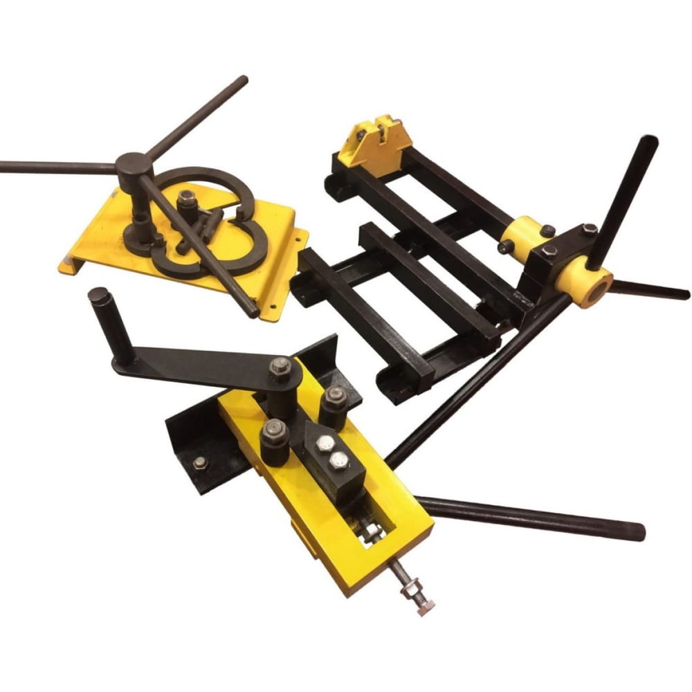 Комплект инструмента AURA TOOLS Сила 6500032 используют для изготовления элементов методом холодной ковки, с дальнейшей сборкой готовых изделий: беседки, мангалы, перголы, навесы, козырьки, балконы, оконные решетки, цветники, калитки и заборы. Данный набор позволяет оборудовать небольшое производство и работать с квадратом 12х12 мм, полосой 25х4 мм, катанкой до 12 мм. Каждый кузнечный станок изготавливает определенные элементы: улитка, калач, завиток, волюта, кольца, квадраты, углы, различные геометрические фигуры, продольное скручивание металла из полосы и квадрата.