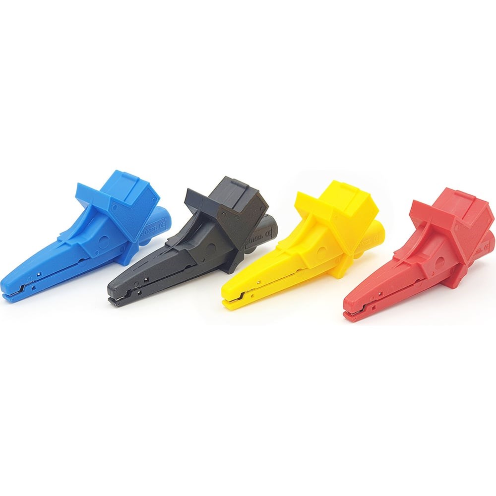 Комплект изолированных зажимов "Крокодил" SONEL 4 штуки WAKRO4KRU обеспечивает надежное соединение при работе. Измерительные провода подключаются к зажимам с помощью универсального разъёма типа "банан" диаметром 4 мм. Благодаря этому, их использование не ограничено одним производителем. Зажимы выпускаются различных цветов, что позволяет обозначить измерительную цепь. Имеют полностью изолированный корпус и надёжный пружинный контакт, что предотвращает нежелательное отключение и возможное короткое замыкание. Данные зажимы применяются в электроустановках до 1000 Вольт, с максимальным током до 20 Ампер. Комплект соответствует Техническим регламентам Таможенного союза ТР ТС 004/2011 О безопасности низковольтного оборудования. Превосходный инструмент для электрика.