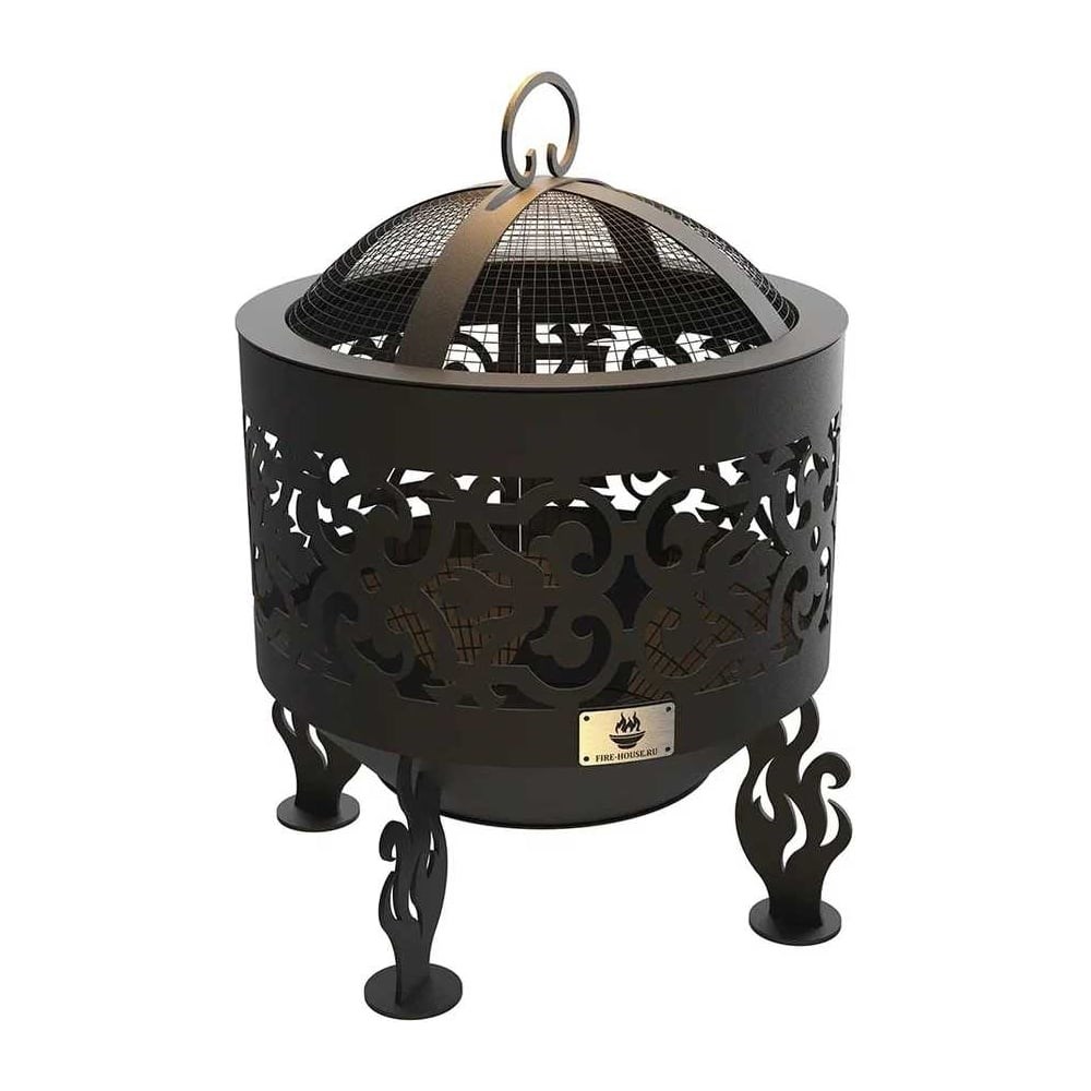 Комплект: костровая чаша с крышкой искрогасителем FIRE-HOUSE ажурная диаметр 60 см коническое дно