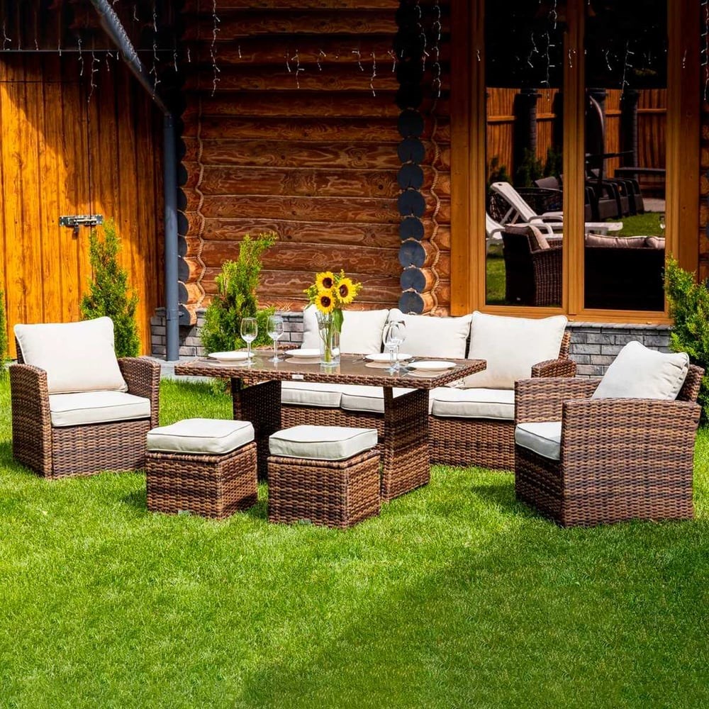 Комплект садовой мебели из искусственного ротанга ручного плетения - ZOYA в коричневом цвете ZOYA - универсальный комплект мебели из искусственного ротанга, созданный для настоящего удовольствия от отдыха на свежем воздухе. Эта садовая мебель из искусственного ротанга идеально подойдёт для террасы, дачи, сада, беседки, бани или летнего кафе — везде, где важны уют, эстетика и надёжность. Уличная мебель из искусственного ротанга сочетает в себе элегантный внешний вид натурального материала и практичность современных технологий. Благодаря чему она впишется в любой интерьер и не потеряет своей актуальности. Набор мебели из искусственного ротанга — всё, что нужно для создания уюта на свежем воздухе. Эта ротанговая мебель станет центральным элементом вашего сада или патио, подчёркивая вкус и статус владельца. Садовая мебель ZOYA — это гармония стиля и комфорта для вашего отдыха на свежем воздухе. Наслаждайтесь каждым мгновением — с уличной мебелью премиум класса Royal Family!
