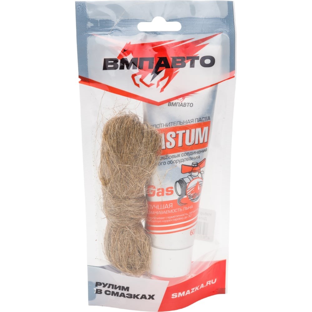 Комплект со льном ВМПАВТО Pastum gas 60 г., туба, лен 15 г 8204 обеспечивает герметичность соединений, облегчает монтаж системы, защищает от коррозии металла, предотвращает окисление льна. Паста для уплотнения резьбовых соединений газового оборудования.