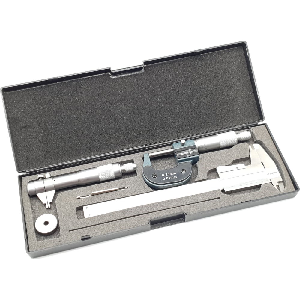 Комплект средств измерения микрометр 0-25мм, микрометр внутренний 5-30мм, штангенциркуль ТЕХНОРЕАЛ МА600051200 предназначен для проведения профессиональных измерений в области промышленности. Набор включает три высокоточных измерительных прибора: Микрометр внутренний 5-30 мм (0,01 мм) Микрометр механический цифровой 0-25 мм (0,01 мм) Штангенциркуль механический 0-150 мм (0,05 мм) Инструменты выполнены из качественных материалов, что обеспечивает надежность и долговечность. Комплект поставляется в удобном кейсе для рационального хранения и транспортировки.