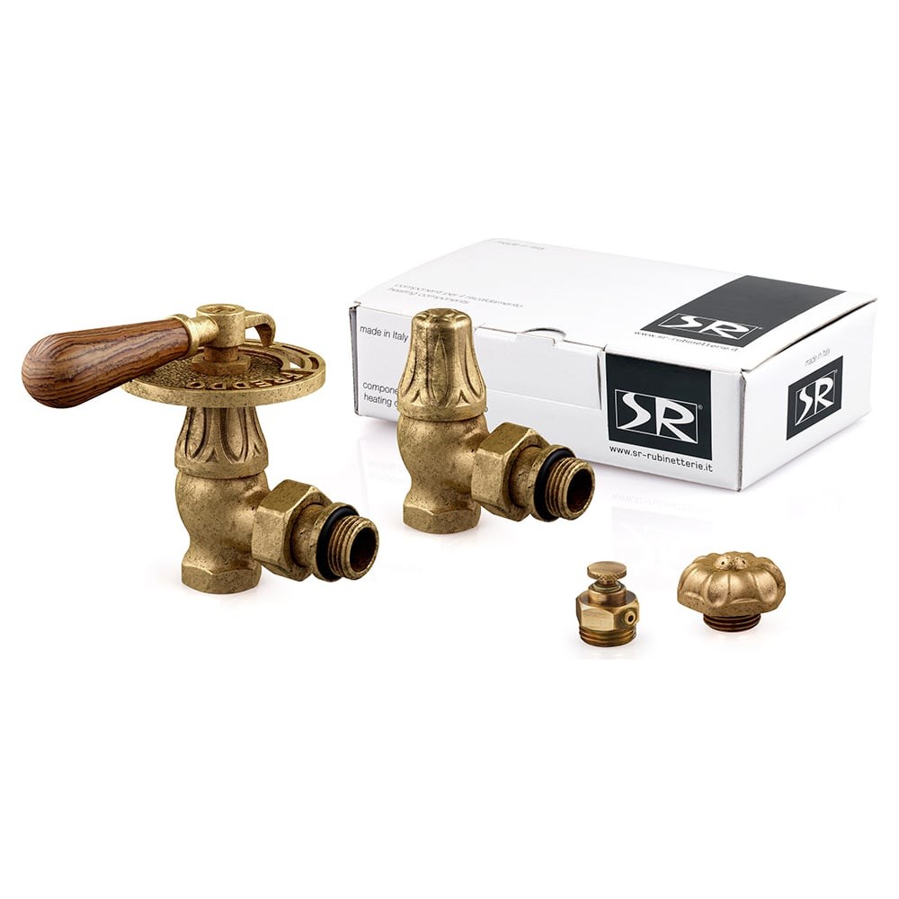 Комплект угловых вентилей SR Rubinetterie серия Belle Epoque 1/2", бронза K310-1500Z000 позволяет подключить чугунный дизайн радиатор в стиле Ретро максимально эстетично. Дополнительные характеристики: Рабочая среда - вода, гликолевые растворы. Максимальный процент гликоля -30%. Максимальное рабочее давление - 10 бар. Максимальная рабочая температура -100°C. Корпус - штампованная латунь CW617N - UNI EN 12165. Гайка - штампованная латунь CW617N - UNI EN 12165. Колпачок запорного клапана -штампованная латунь CW617N - UNI EN 12165. Внутренние механизмы - прутковая латунь CW614N - UNI EN 12164. Маховик регулировки - PA6. Уплотнительные элементы - резина EPDM PEROX.