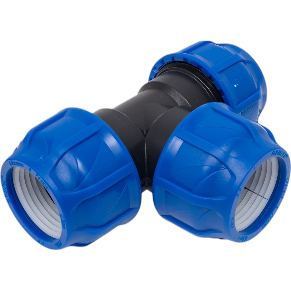 Компрессионный тройник VALFEX ПНД, 63-63-63 1210012636363 выполнен из полипропилена и применяется для соединения полиэтиленовых труб кольцевого сечения по ГОСТ 18599 и/или ГОСТ 32415-2013. Предназначен для транспортирования воды с температурой до 40° С и максимальным рабочим давлением 1,6 МПа в системах хозяйственно-питьевого водоснабжения, а также для транспортирования других жидких сред, к которым материал фитинга и его уплотнительных элементов химически стоек. Фитинг предназначен для соединения трех отрезков трубы, один из которых устанавливается перпендикулярно двум другим. Равнопроходной тройник используется для соединения труб одного диаметра. Применяется для разветвления ПНД труб. Рабочая температура - 20°С.