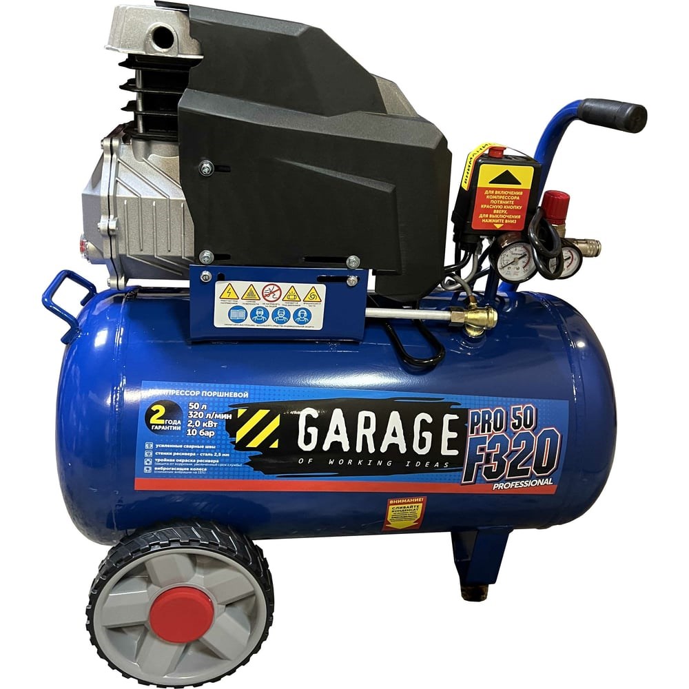 Компрессор поршневой, маслозаполненный GARAGE PRO 50.F320/2.0 предназначен для получения и транспортировки сжатого воздуха. Тип привода: прямой; Объем ресивера: 50л; Производительность на входе: 320 л/мин; Мощность двигателя: 2.0 кВт; Максимальное давление: 8 атм; Напряжение: 220 В; Патрубки для выхода сжатого воздуха: 2; 1-быстроразъемная муфта с запорным клапаном(под стандартные штуцеры "D" (10.9-11.9мм)); 2-кран с выходом под елочку; Размеры с упаковкой ДШВ(мм) : 670*305*650; Масса: 30кг. Китай - страна производства; Россия - страна родина бренда. Компрессор применяется для работы с различными пневматическими инструментами, подкачки шин автомобиля, матрацев, мячей. Продувка и опрессовка трубопроводных магистралей, очистка и продувка воздухом машин и деталей от грязи и пыли, покраски краскораспылителем (от стен до машин), антикоррозионной обработки различных поверхностей.Внимание! В картере масла нет, и канистры (емкости с маслом) в комплектации нет. На заводе компрессор проверялся с маслом в картере, затем масло было слито. Если попадется с маслом - значит повезло - это из более ранних партий поставки компрессоров.