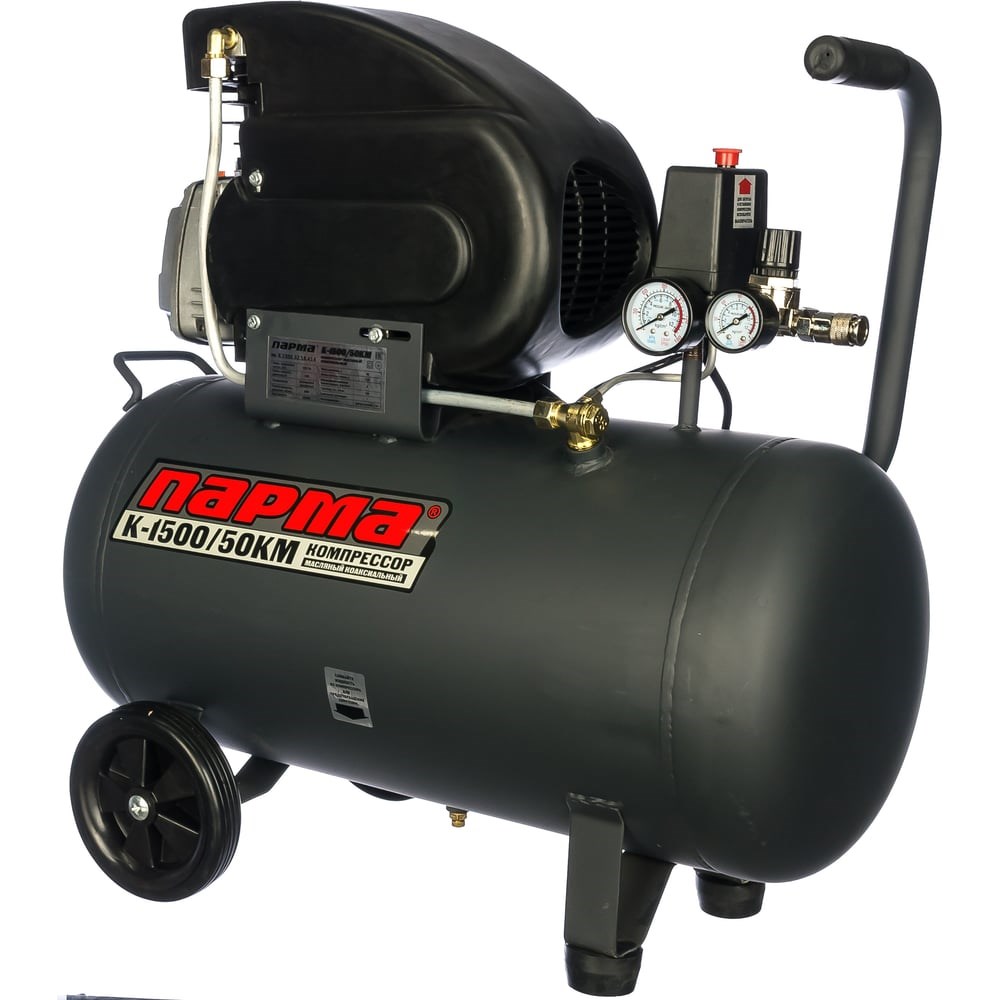 Компрессор Парма K-1500/50КМ 02.014.00003 служит для питания пневматического инструмента. Небольшие габариты способствуют широкому применению модели в гараже, мастерской с небольшой загруженностью. Благодаря наличию асинхронного однофазного двигателя устройство отличается высокой производительностью. Рукоять оборудования имеет рельефное нескользящее покрытие в месте захвата, что облегчает управление во время транспортировки. Два манометра обеспечивают возможность визуального контроля за давлением на выходе и в ресивере, а регулятор позволяет осуществлять настройку в случае необходимости. Встроенный вентилятор исключает перегрев внутренних узлов и гарантирует стабильность эксплуатации компрессора. Специальное покрытие надежно защищает аппарат от коррозии и способствует долгому сроку службы.