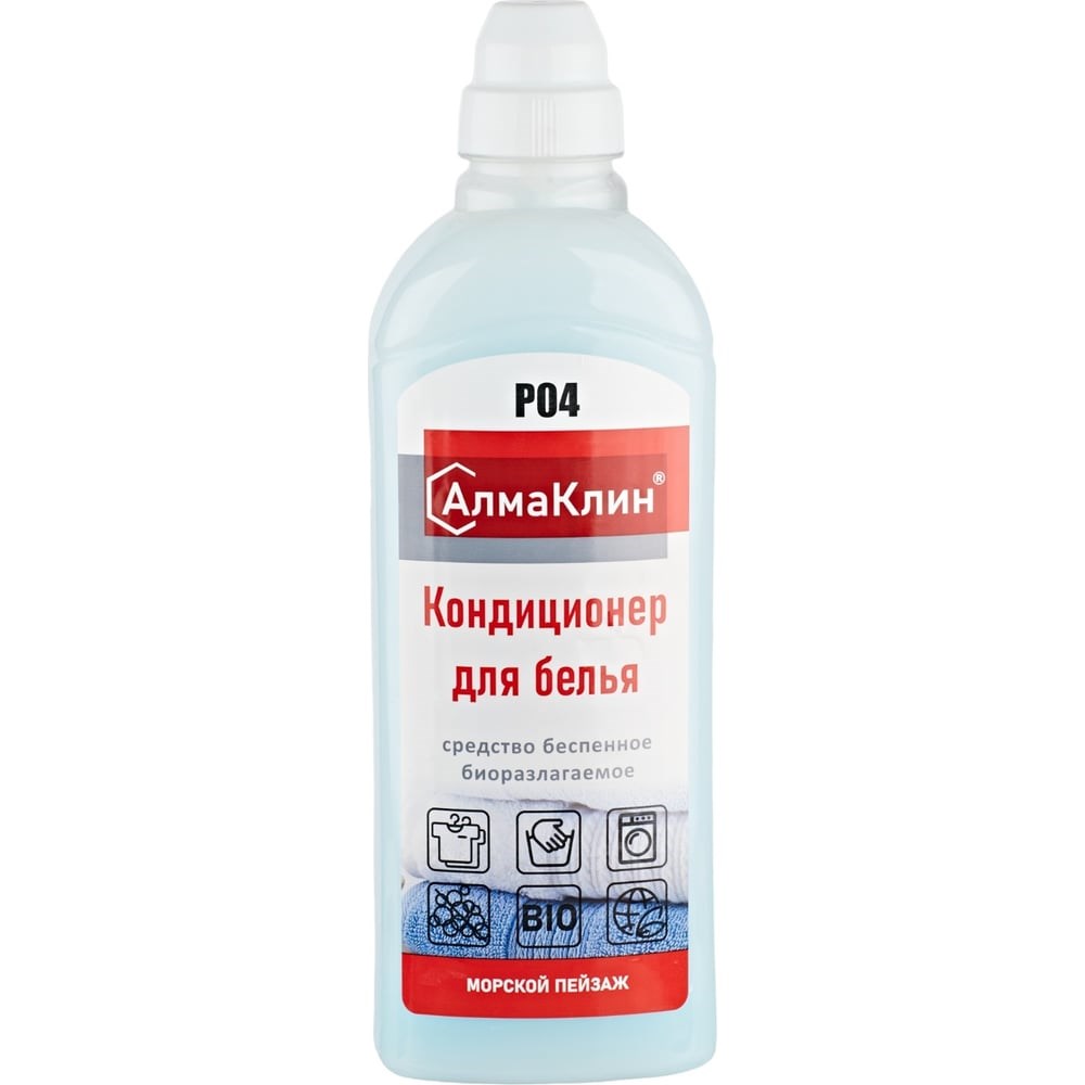 Кондиционер для белья ООО "БАЗОВАЯ ДЕЗИНФЕКЦИЯ" АлмаКлин P04, Морской пейзаж, 1 л, крышка P04-МП-1Л предназначен для ополаскивания любого белья с целью придания мягкости ткани, антистатического эффекта, приятного аромата и облегчения глажения. Применим в стиральных машинах любого типа и ручной стирки.