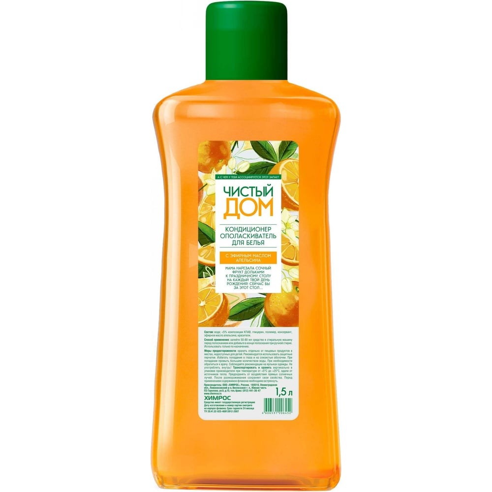 Кондиционер-ополаскиватель для белья Чистый дом апельсин, 1.5 л 555 содержит эфирное масло апельсина, благодаря которому средство имеет яркий, летний аромат: Придает белью мягкость; Легко выполаскивается; Обеспечивает приятный аромат; Продлевает срок службы вещей. Способ применения: Залейте 50-80 мл. средства в стиральную машину перед полосканием или добавьте в конце полоскания при ручной стирке. Использовать только по назначению.