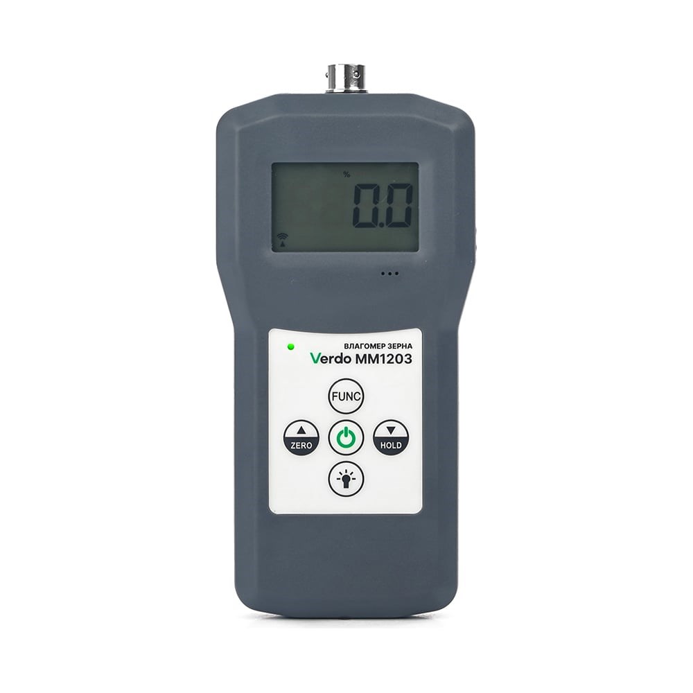 Влагомер зерновых культур VERDO MM1203 предназначен для измерения относительной влажности различных видов зерна (37 кодов) в процессе сбора, накопления, перевозки и хранения. В приборе реализован кондуктометрический метод измерения с автоматической температурной компенсацией. Также во влагомере предусмотрены функции калибровки (установки) нуля и корректировки показаний. Влагомер VERDO MM1203 имеет эргономичный корпус и оснащен большим ЖК-дисплеем с подсветкой для удобного считывания показаний, а также выносным щупом для удобства измерений. Питание влагомера осуществляется при помощи четырех батарей типа ААА.Технические характеристики:Метод измерения: кондуктометрический.Тип датчика: погружной/проникающий выносной.Диапазон измерения относительной влажности: 3…80%.Погрешность: ±0,5%.Калибровка/установка нуля: есть.Корректировка показаний/индивидуальная градуировка: есть.Температурная компенсация: есть.Условия эксплуатации: температура: 0...60°С; относительная влажность <90%.