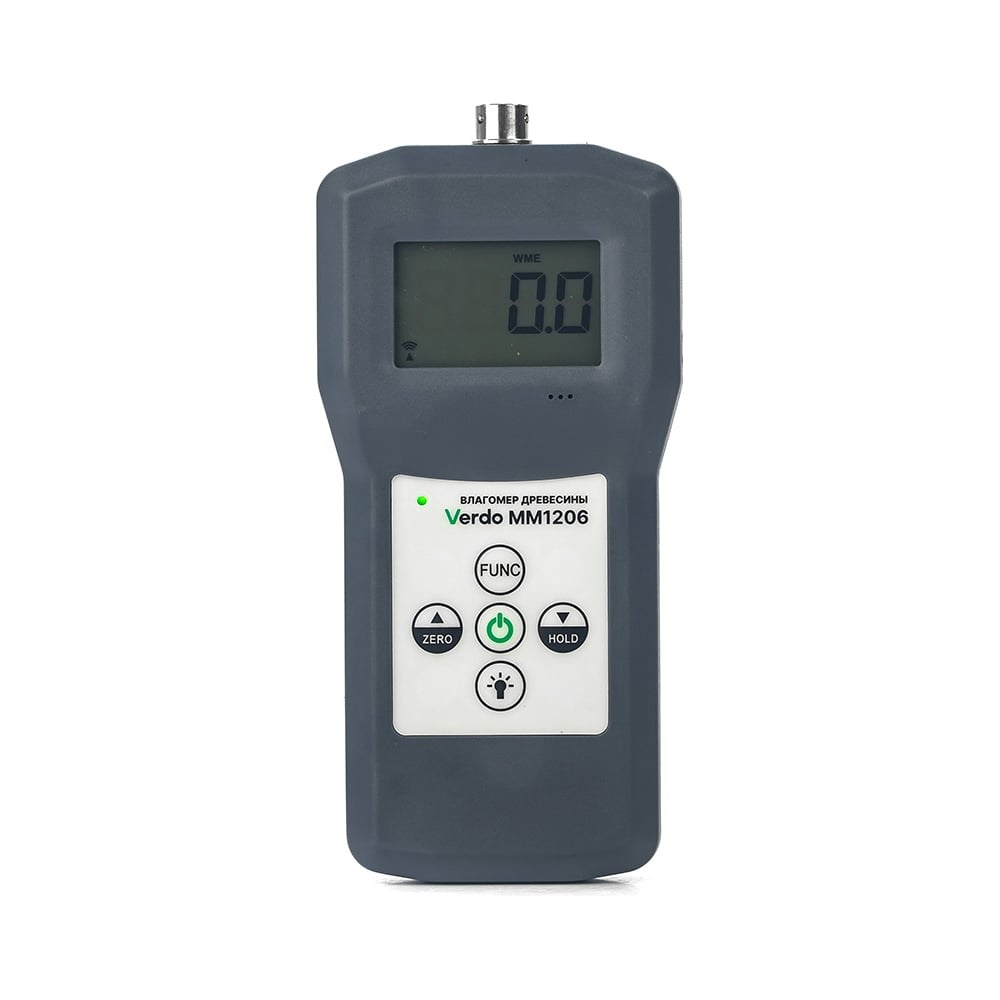 Влагомер древесины VERDO MM1206 предназначен для измерения относительной влажности различных видов древесины (8 кодов, более 100 пород). В приборе реализован кондуктометрический метод измерения с автоматической температурной компенсацией. Также во влагомере предусмотрены функции калибровки (установки) нуля и корректировки показаний. Влагомер VERDO MM1206 имеет эргономичный корпус и оснащен большим ЖК-дисплеем с подсветкой для удобного считывания показаний, а также выносным щупом для удобства измерений. Питание влагомера осуществляется при помощи четырех батарей типа ААА.Основные породы древесины: береза, дуб, клен, ясень, ель, каштан, лиственница, сосна, тис, вяз, липа и многие другие.Технические характеристики:Метод измерения: кондуктометрический.Тип датчика: погружной/проникающий выносной.Диапазон измерения относительной влажности: 0…80%.Погрешность: ±0,5%.Калибровка/установка нуля: есть.Корректировка показаний/индивидуальная градуировка: есть.Температурная компенсация: есть.Условия эксплуатации: температура: 0...60°С; относительная влажность: 5...90%.Тип измеряемого материала: древесина.
