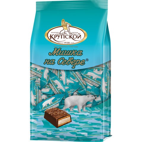 Конфеты глазированные ФАБРИКА ИМ. КРУПСКОЙ "Мишка на севере" с тертым миндалем, 200 г, 30573