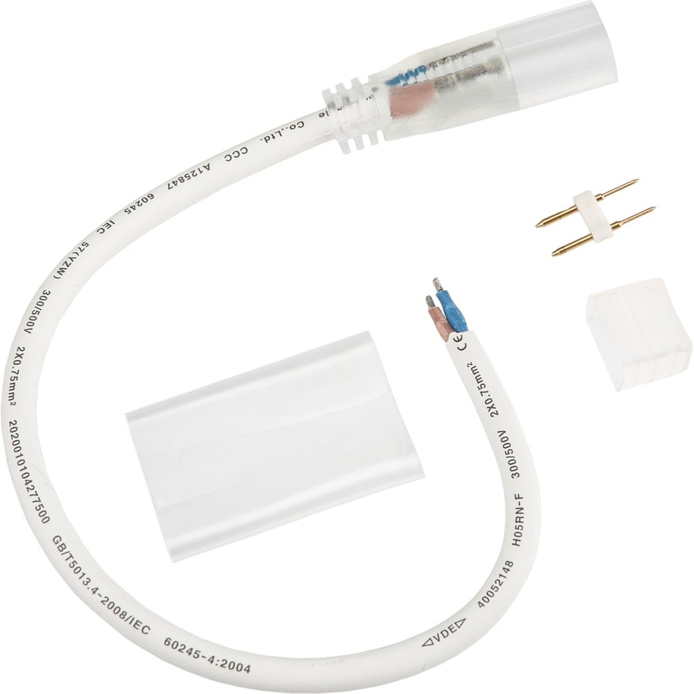 Данный комплект подойдет для подключения одностороннего неона 8x16 мм с напряжением 24В к источнику питания, либо для соединения и коммутации отрезков одностороннего неона 8х16 мм с напряжением 220В на расстоянии друг от друга с помощью данных коннекторов и кабеля ПВС. При подключении гибкого неона к соединительному разъему (муфте) необходимо заизолировать свободное воздушное пространство соединительного разъема (муфты) морозостойким силиконовым герметиком, предотвращающим попадание влаги. Сверху данного соединения необходимо использовать термоусаживаемую трубку.