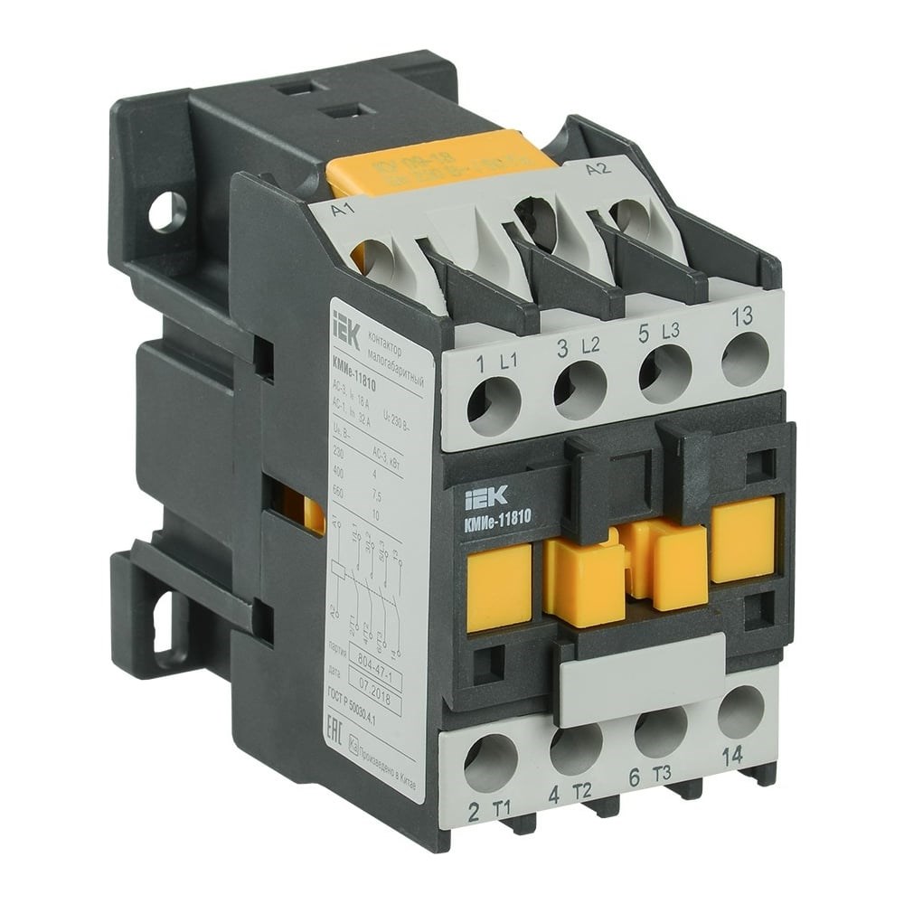 Малогабаритные контакторы серии КМИе на ток нагрузки от 9 до 95 А предназначены для пуска, остановки и реверсирования асинхронных электродвигателей с короткозамкнутым ротором на напряжение до 660 В (категория применения АС-3), а также для дистанционного управления цепями освещения, нагревательными цепями и различными малоиндуктивными нагрузками (категория применения АС-1).Область применения малогабаритных контакторов серии КМИе - управление вентиляторами, насосами, тепловыми завесами, печами, кран-балками, станками, освещением, в системах автоматического ввода резерва (АВР).По своим конструктивным и техническим характеристикам контакторы малогабаритные серии КМИе соответствуют требованиям международных и российских стандартов ГОСТ Р 50030.4.1-2002 (МЭК 60947-4-1-2000).Дополнительные характеристики:Номинальное импульсное напряжение - 6кВ.Условный тепловой ток Ith при АС-1 - 32А.Номинальная мощность при AC-3 230В - 4.0кВт.Номинальная мощность при AC-3 400В - 7.5кВт.Номинальная мощность при AC-3 660В - 10.0кВт.Максимальная кратковременная нагрузка - 324А.Условный ток короткого замыкания Inc - 3000А.Мощность рассеяния при Ie АС-3 - 0.8Вт.Мощность рассеяния при Ie АС-1 - 2.5Вт.Время срабатывания при замыкании - 12…22мс.Время срабатывания при размыкании - 4…19мс.Температура эксплуатации - -25…+50°C.