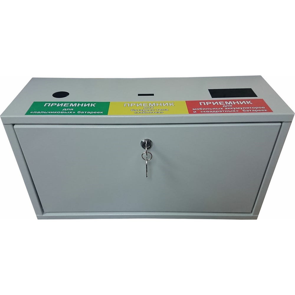Контейнер для сбора батареек ПК ОТК «Батарейка 3» РКСББ для раздельного сбора батареек Материал - углеродистая сталь 0,8 мм. с нанесением полимерно-порошкового покрытия серого цвета (RAL 7035 шагрень). Сварные швы, высокая прочность и герметичность. Можно собирать несколько различных видов батареек.