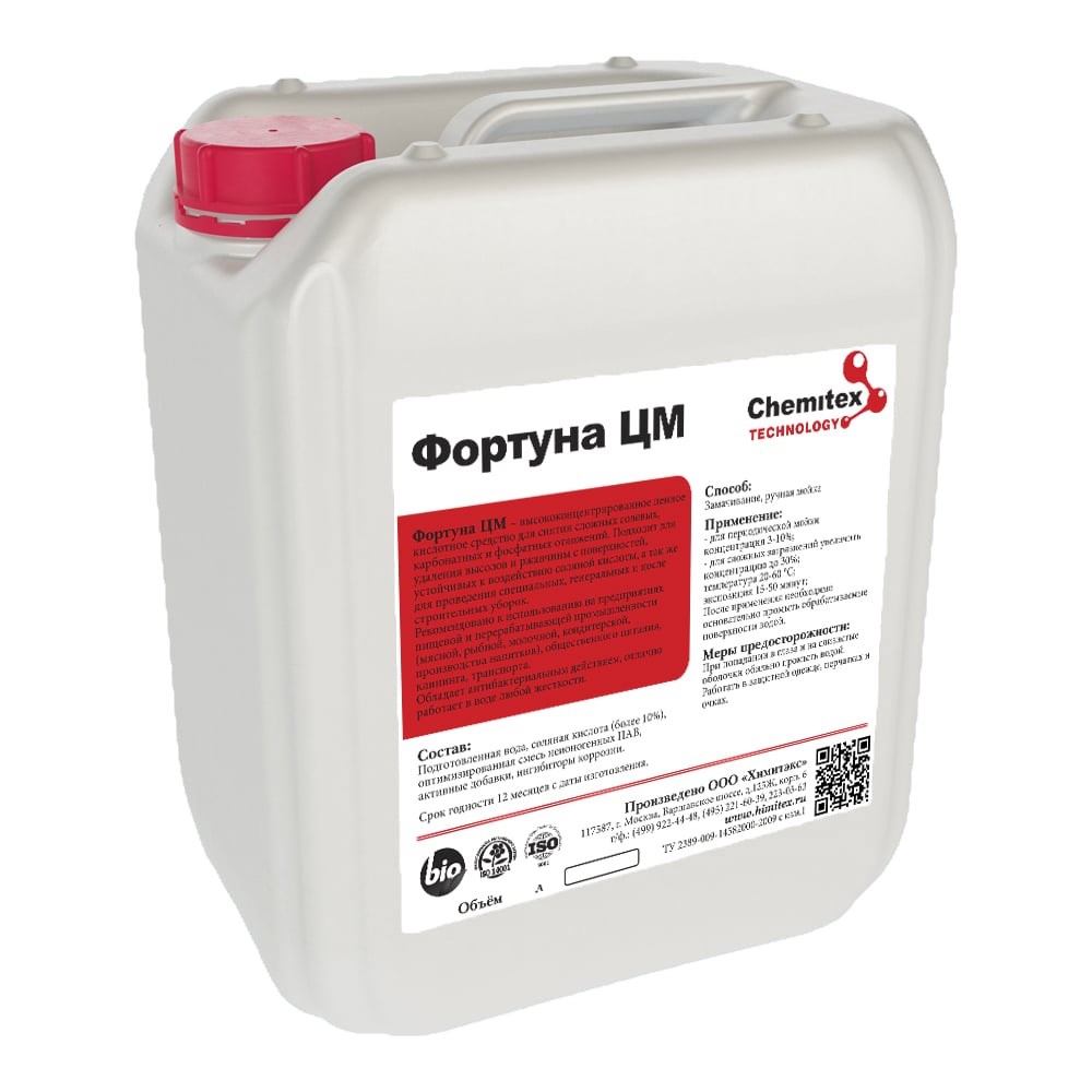 Концентрированное кислотное средство для очистки поверхностей от ржавчины, известкового налета, остатков цементного раствора ХИМИТЭКС Фортуна ЦМ