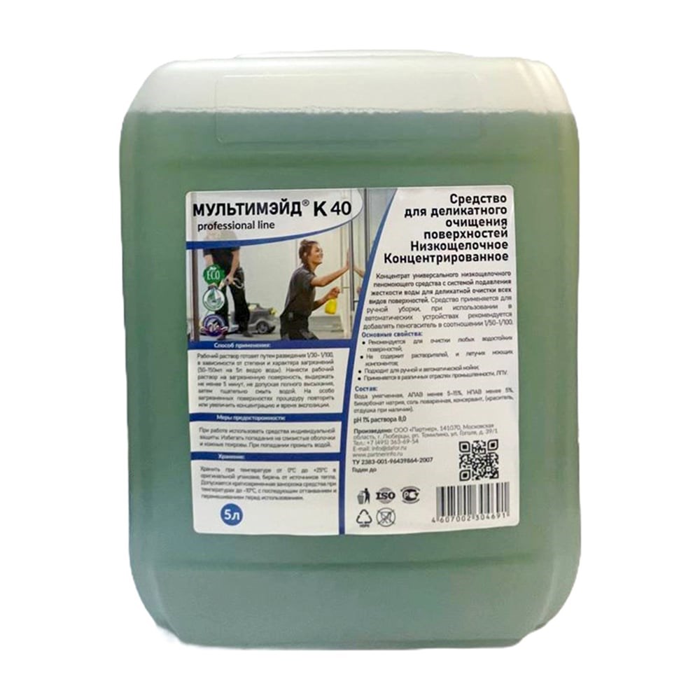 Универсальное средство для уборки дома Мультимэйд К40 - концентрированный продукт, предназначенный для различных поверхностей: натурального и искусственного камня, ПВХ, линолеума, пластиковых, деревянных и металлических покрытий и др. Эффективно обезжиривает поверхности, удаляет загрязнения, уничтожает бактерии и вирусы. Подходит для использования в быту и в профессиональной уборке.Обладает приятным ароматом, не оставляет разводов на поверхностях.Удаляет запахи домашних животных, табака, пищи и пищевых отходов (из мусорных баков).