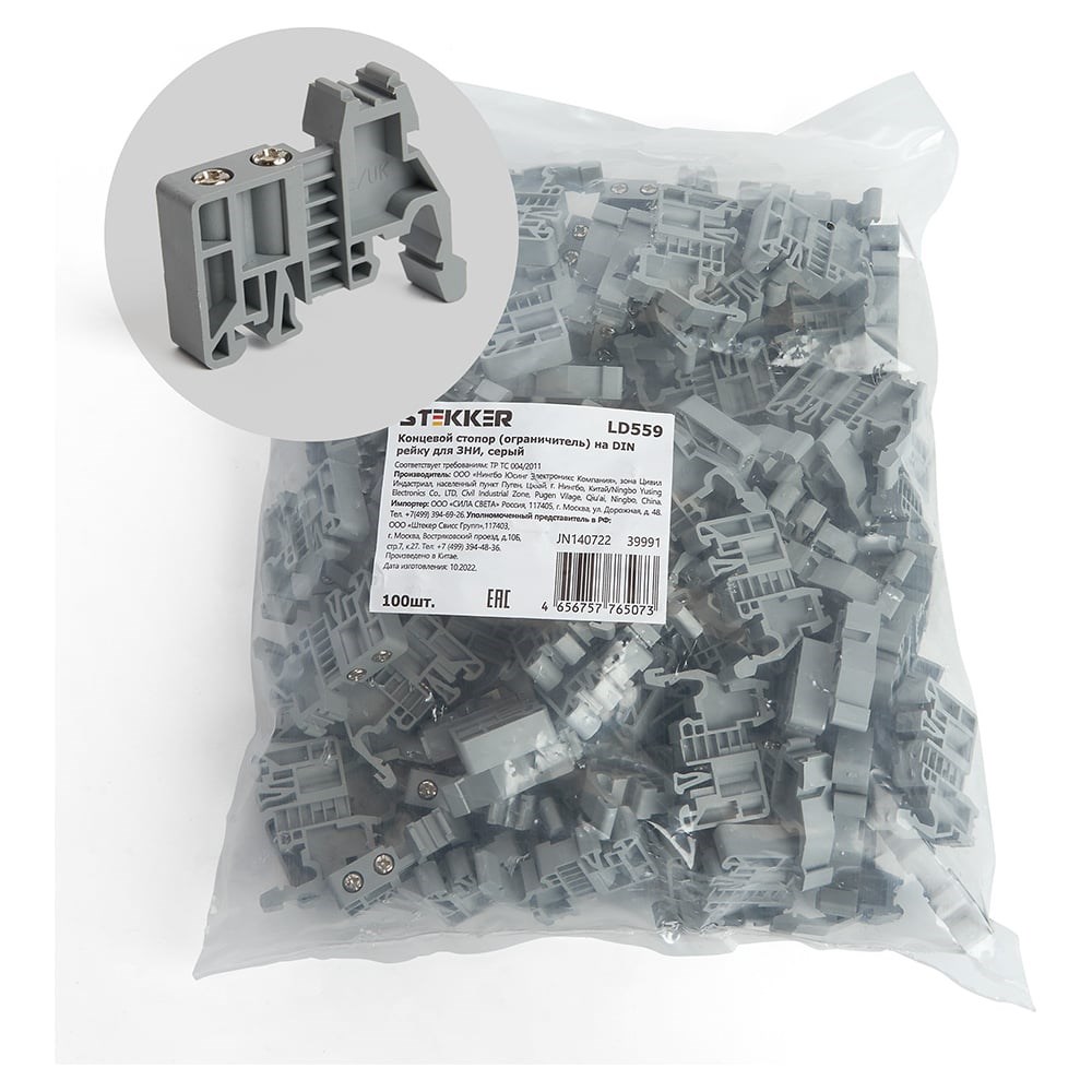 Концевой стопор (ограничитель) на DIN рейку для ЗНИ STEKKER серый LD559 39991