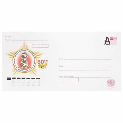 Конверт маркированный ПОЧТА РОССИИ "литера А", E65 (110х220 мм), отрывная лента, "Куда-Кому", 80 г/м2