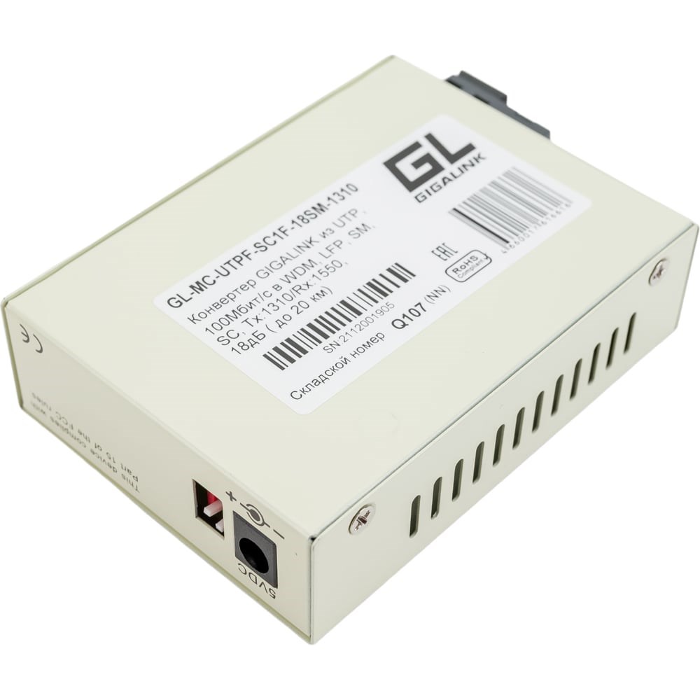 Конвертер UTP GIGALINK 100Мбит/c, WDM, LFP, SM, SC GL-MC-UTPF-SC1F-18SM-1310