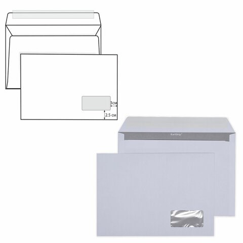 Конверты С4 (229х324 мм) ПРАВОЕ ОКНО, отрывная лента, 90 г/м2, КОМПЛЕКТ 500 шт., внутренняя запечатка, 121102