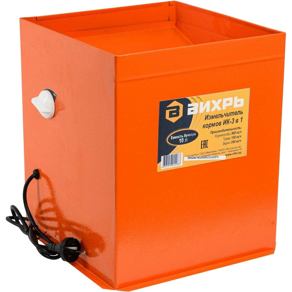 Измельчитель кормов ВИХРЬ ИК 3 в 1 станет прекрасным помощником на подворье. С его помощью можно приготовить корма из различных фуражных продуктов. В зернодробилку загружают траву, сено, зерно, корнеплоды. Регулировка оборотов позволяет произвести корм оптимального размера как для крупного скота, так и для птицы.Измельчитель имеет простую конструкцию. Он состоит из трех функциональных блоков. Это загрузочная камера, моторный отсек и камера измельчения. Продукт, помещенный в загрузочный отсек, переходит к ножам, а затем пробивается через сито.При использовании измельчителя кормов ВИХРЬ ИК 3 в 1 стоит помнить, что продолжительность работы не должна превышать 6 часов.Техническое обслуживание предполагает периодический контроль степени износа сита и ножей и их замена в случае необходимости. Требуется очищать от продуктов размола составные части аппарата.Если Вы имеете подсобное хозяйство с домашними животными, то зернодробилка позволит сэкономить существенное количество сил и времени на изготовлении кормов.