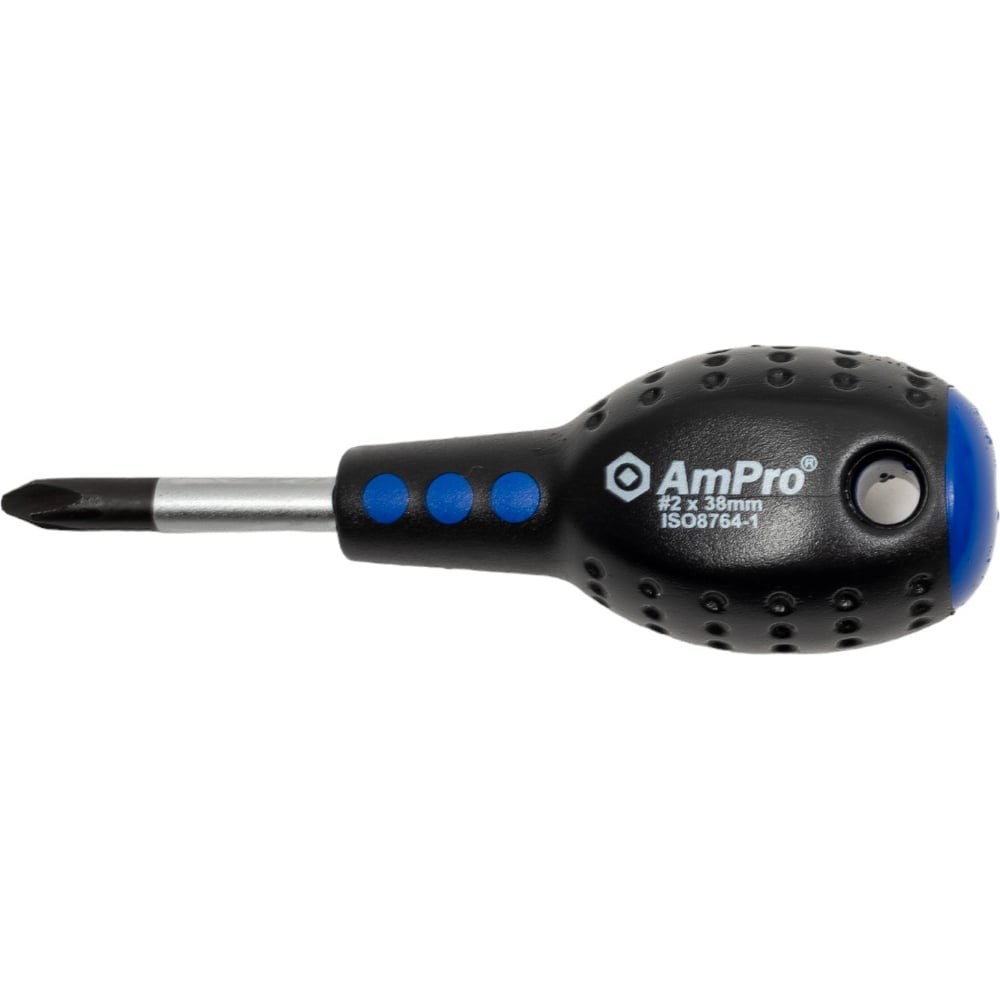 Крестовая отвертка AmPro короткая, PH2x38 мм T32029 используется для работ с крепежом при различных ремонтных и монтажных работах. Стержень отвертки выполнен из качественной хромованадиевой стали. Материал отличается надежностью и долговечностью. Эргономичная рукоятка обеспечивает комфортную эксплуатацию.