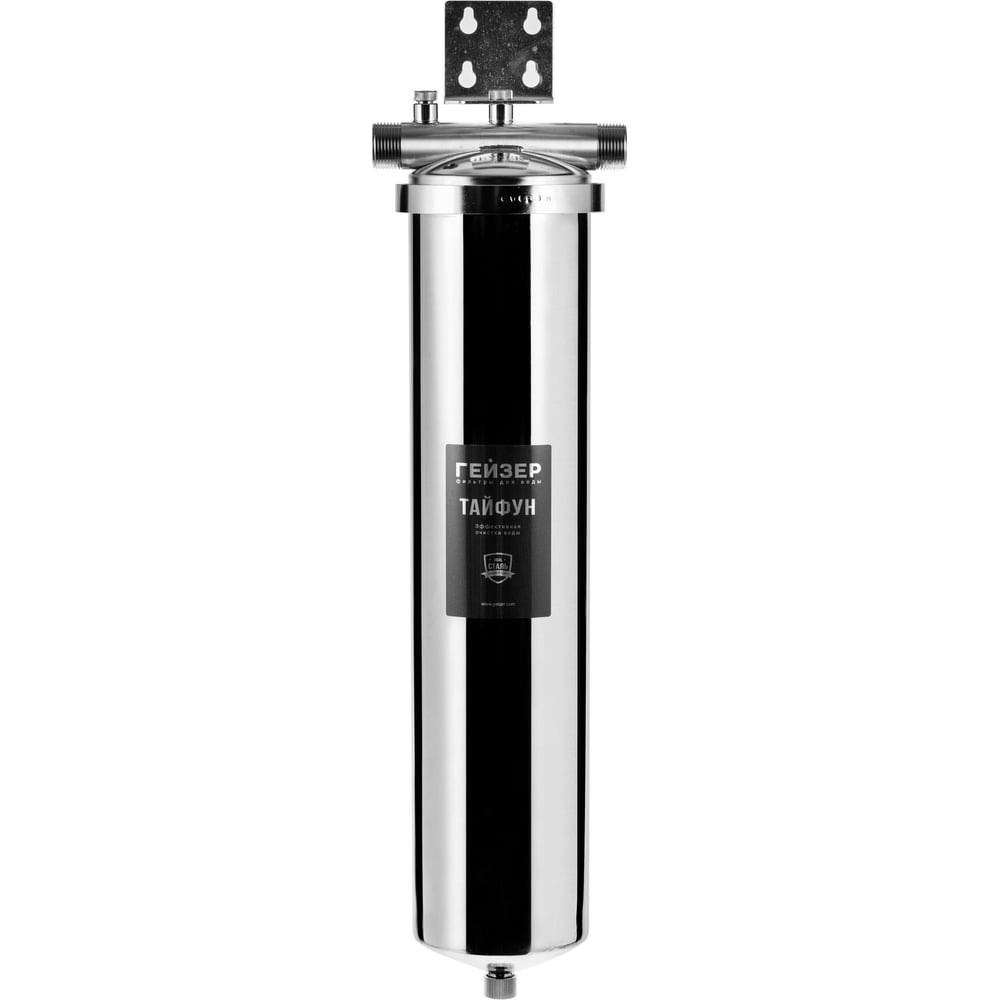 Корпус Гейзер Тайфун 20BB рассчитан на работу под давлением и установку на входе в систему горячего или холодного водоснабжения. Внизу корпуса находится клапан слива воды для удобной замены картриджа. Корпус и крышка фильтра изготовлены из высококачественной нержавеющей стали марки 304L с металлической скобой. Применяется совместно с картриджем ВВ 20".Для исключения появления электрохимической коррозии, корпус фильтра необходимо заземлить при установке. В случае, если корпус фильтра подключается к системе водоснабжения, состоящей полностью из металла и имеющей заземление, то дополнительное заземление корпуса не требуется.Технические характеристики:Температура очищаемой воды: +4оС...+95оС;Максимальное рабочее давление: 8 атм;Присоединительный размер: 1";Габаритные размеры (высота х ширина): 640 х 200 мм;Гарантия 3 года;Производство: Россия.