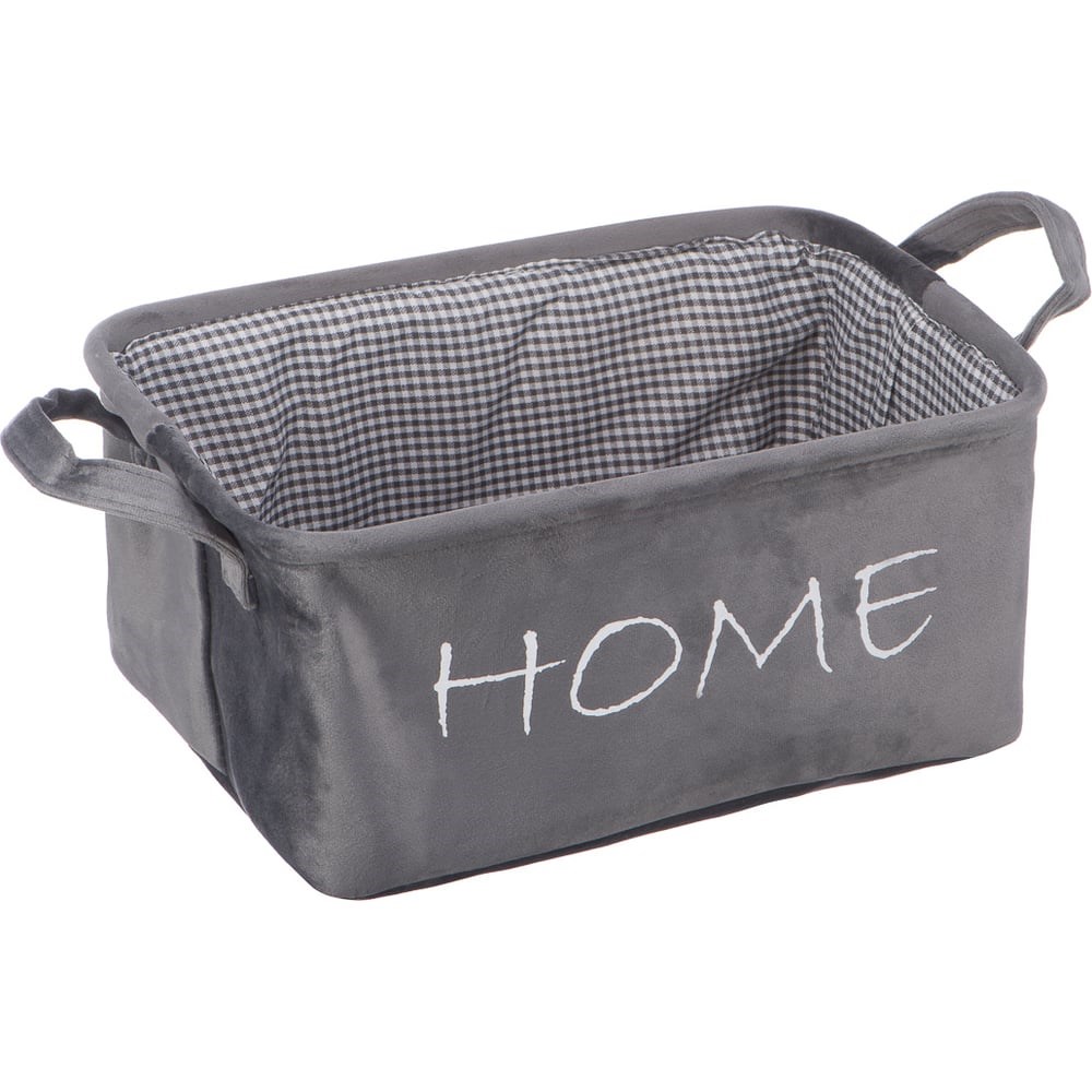 Стильная корзина для хранения в универсальном сером цвете гармонично дополнит интерьер и поможет навести порядок на полках стеллажа или шкафа. Разместите в ней одежду или белье, аксессуары, игрушки, книги, канцелярию или прочие мелочи, которые некуда сложить. Материал изготовления корзины: велюр, металлический каркас.