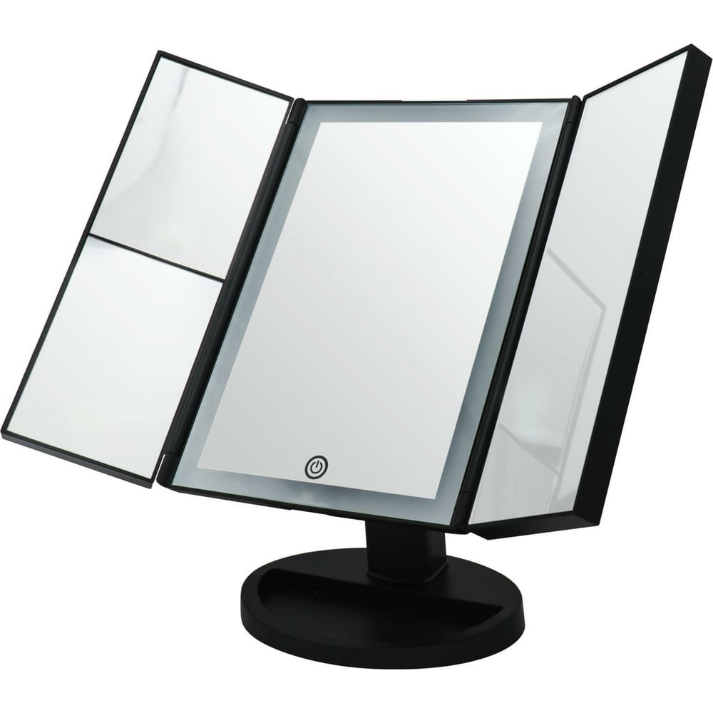 Косметическое настольное зеркало RIDDER Vivian M 1х/2х/5х-увелич. LED сенсор USB чёрный О3110010 изготовлено из высококачественных материалов, прошло контроль качества в Германии. Зеркало имеет LED сенсор. Электропитание включает в себя USB-кабель или используется аккумулятор (4х ААА батарейки - в комплекте не идут), класс энергоэффективности А. Зеркало складное, небольшого размера, за счет чего не займет в интерьере много места. Основное зеркало имеет стандартное увеличение - 1х. Два зеркала с боку имеют увеличение - 2х и 5х.
