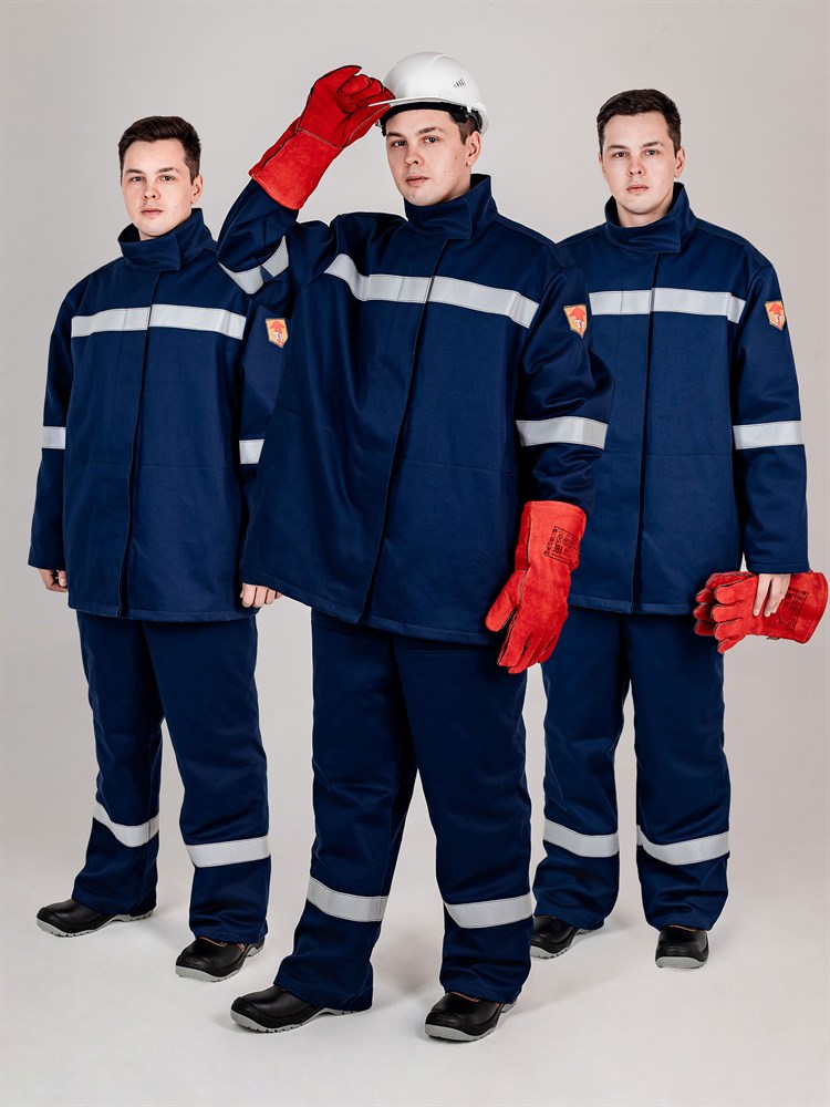 Для работ, при которых расстояние от работающего до источника искр и брызг распл.о металла от 0,5 до 2 м КУРТКА - воротник стойка - супатная застежка на пуговицы - теплый утеплить отстегивается - швы с использованием ниток из арамидных волокон - термостойкая СОП полоса 50 мм по низу кокетки БРЮКИ - свободного прямого покроя - супатная застежка на пуговицах - швы с использованием ниток из арамидных волокон - брюки на подтяжках, отстегиваются