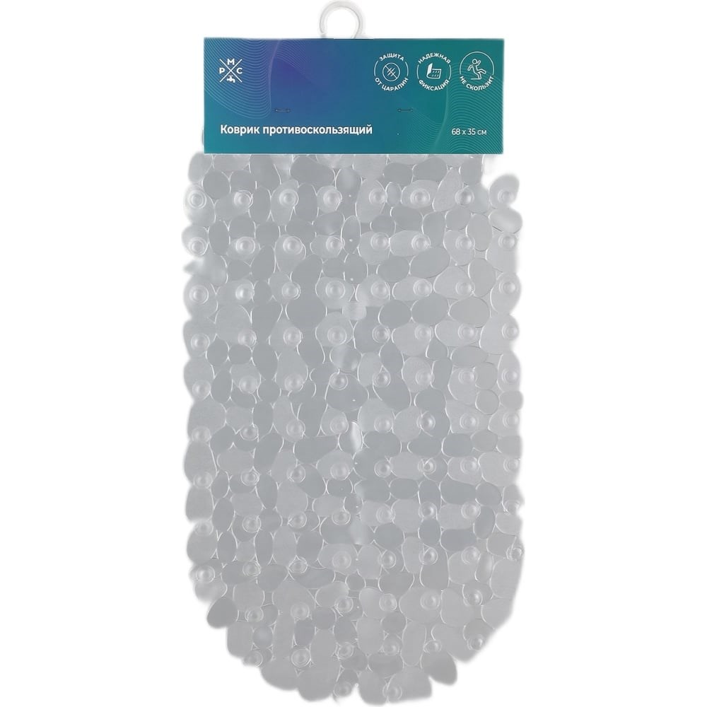 Коврик для ванной комнаты. На присосках (противоскользящий), что позволяет зафиксировать изделие в одном положении. Материал: Поливинилхлорид (ПВХ). Размер: 68*35см (овальная форма).