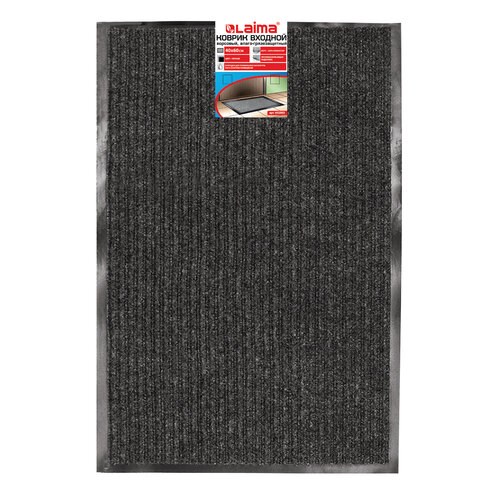 Коврик входной ворсовый влаго-грязезащитный 40х60 см, толщина 7 мм, ребристый, черный, LAIMA, 602863