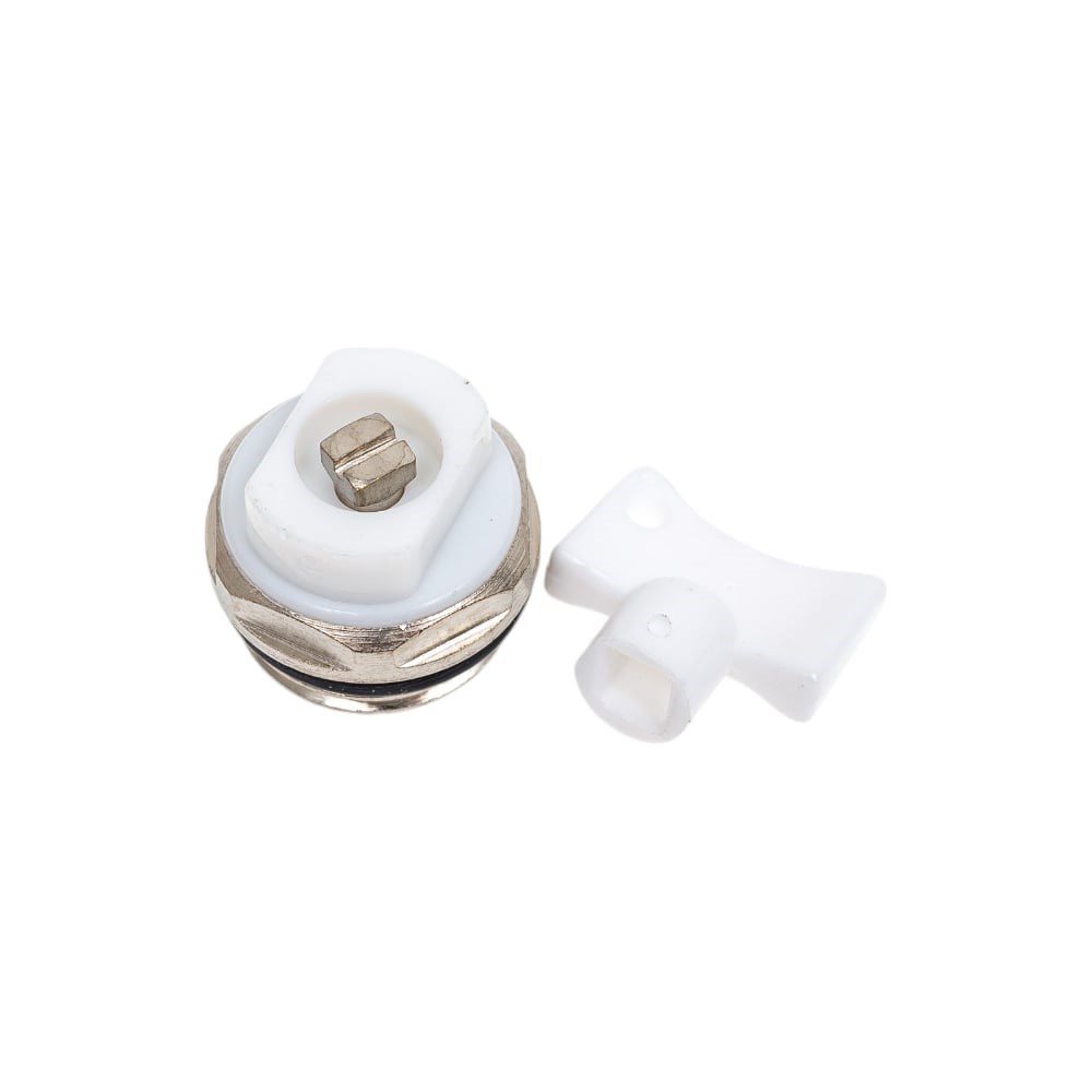 Клапан-воздухоотводчик Radena предназначен для ручного спуска воздуха, скопившегося в отопительном приборе. Используется в водяных системах отопления. Допускается применение клапана-воздухоотводчика в системах с низкозамерзающими теплоносителями. Максимальная температура теплоносителя - 110 °C Рабочее давление - 1 МПа Винт игольчатого клапана откручивается шлицевой отверткой или спец. ключом (в комплекте) Момент затяжки – не более 20 Нм Корпус – никелированная латунь SW 617N Винт – латунь SW 614N Оголовок – нейлон Уплотнение – кольцо из EPDM O-ring Ключ применяется для управлением ручным воздухоотводчиком (краном Маевского): Материал – нейлон Размер под ключ – квадрат 5х5 мм Вместо ключа может использоваться шлицевая отвертка с шириной жала 5 мм