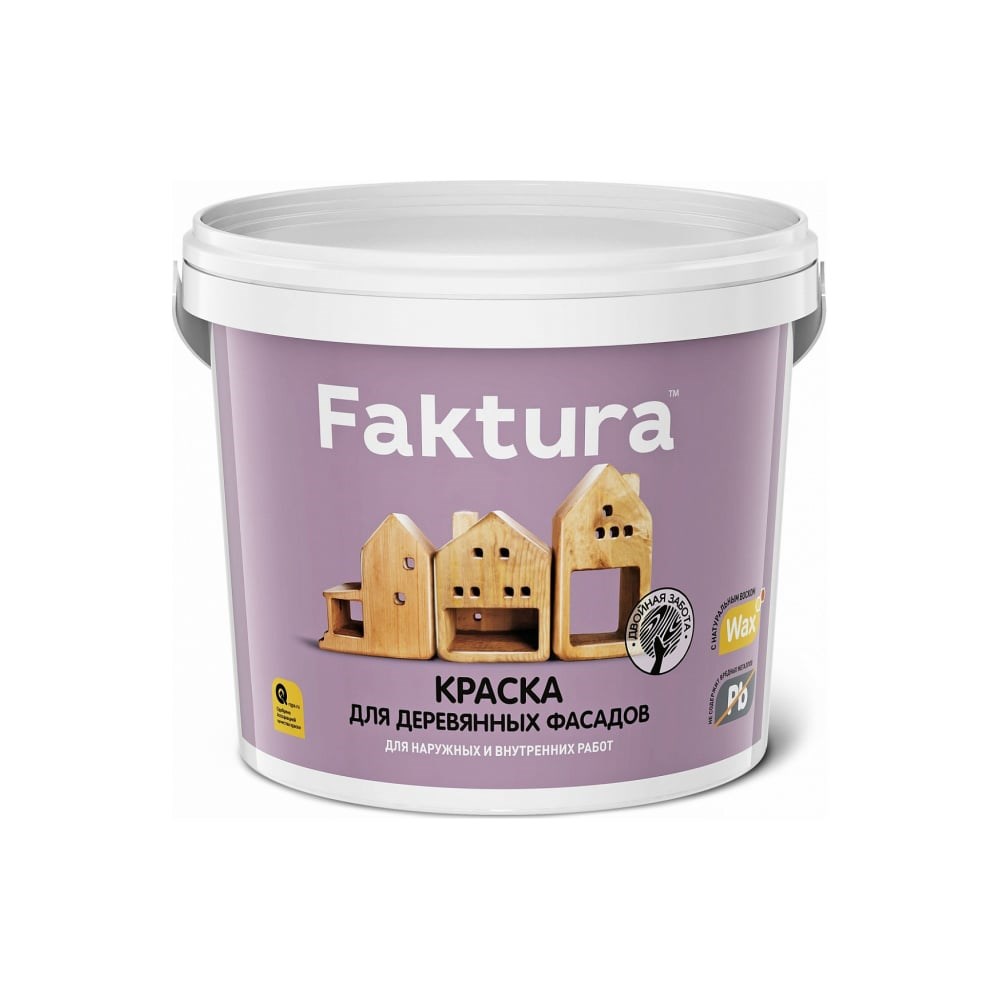 Краска для деревянных фасадов FAKTURA с натуральным воском и биозащитой, база С, ведро 9 л О02697 предназначена для окраски деревянных фасадов и интерьеров снаружи и внутри помещений. Натуральный воск надёжно защищает деревянную поверхность от дождя и проникновения влаги. Антисептические добавки предотвращают образование и развитие синевы, плесени и других микроорганизмов. Эластичное паропроницаемое покрытие не теряет свойств при сезонном изменении древесины и позволяет дереву "дышать", бережно оберегая его от перепадов температур, солнечного излучения и других атмосферных воздействий. Краска не содержит вредных компонентов, полностью безопасна для человека и окружающей среды. Подходит для любых деревянных поверхностей. Внимание! База С является основой для получения ярких насыщенных тонов и без колеровки не применяется.