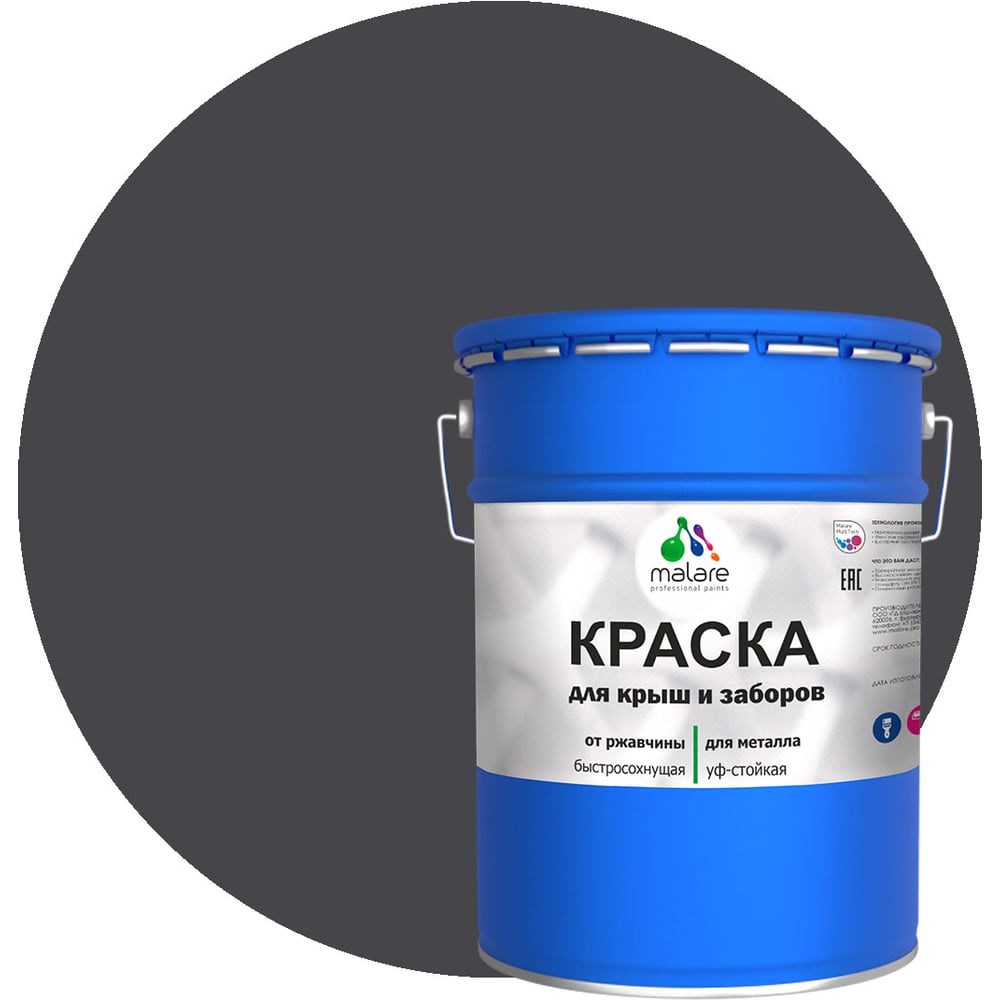 Краска Malare для металлического забора, металлических крыш и металлочерепицы — быстросохнущая краска для окрашивания металлических поверхностей, в том числе со следами коррозии. Представляет собой суспензию пигментов и наполнителей в растворе полиакриловой смолы с добавлением антикоррозионных пигментов и функциональных добавок. Совмещает в себе свойства преобразователя ржавчины, антикоррозионной грунтовки и финишного эмалевого покрытия, грунт-эмаль 3 в 1. 100% антикоррозионная защита металла (ингибитор коррозии) Высокая прочность Область применения: Данная краска применяется для комплексной атмосферостойкой антикоррозионной защиты черных металлов (железо и сплавы на его основе). Является самостоятельным антикоррозионным покрытием для металлических поверхностей, подвергающихся атмосферным воздействиям и для окраски внутри помещений. Обеспечивает надёжную антикоррозионную защиту: Плёнка краски сочетает достаточную твёрдость с высокой эластичностью и долговечностью, устойчива к изменению температуры от — 50 до + 60 ºС. Температура окружающей среды и окрашиваемой поверхности может быть от – 20 ºС до + 50 ºС. Расход на один слой: до 120-170 г/м2 по гладким поверхностям; Расход на рельефные поверхности не нормируется.