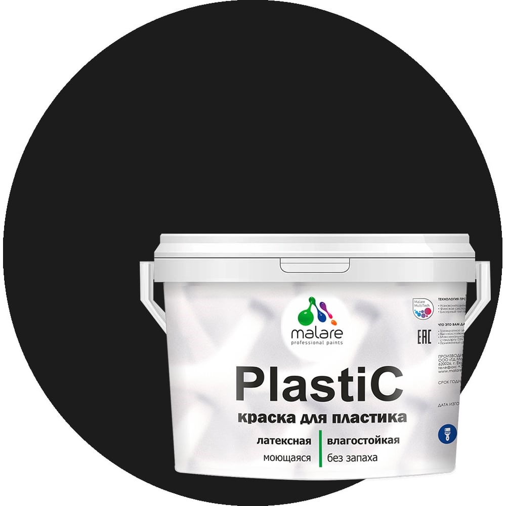 Краска для пластика MALARE PlastiC (черный; 10 кг) 2036744671969 подходит для окрашивания: пластика, подоконников, откосов, ПВХ, ЛДСП, стен и всех типов обоев (в том числе и флизелиновых). Образует покрытие, устойчивое к многократному мытью с применением бытовых не абразивных моющих средств. Обладает экономичностью и высокими эксплуатационными характеристиками, такими как износостойкость (1 класс стойкости к истиранию по стандарту ISO 11998 / DIN EN 13 300). Сертифицирована для использования в детских и медицинских учреждениях. Внимание, изображение товара может отличаться от реального! Верные параметры указаны в технических характеристиках товара.