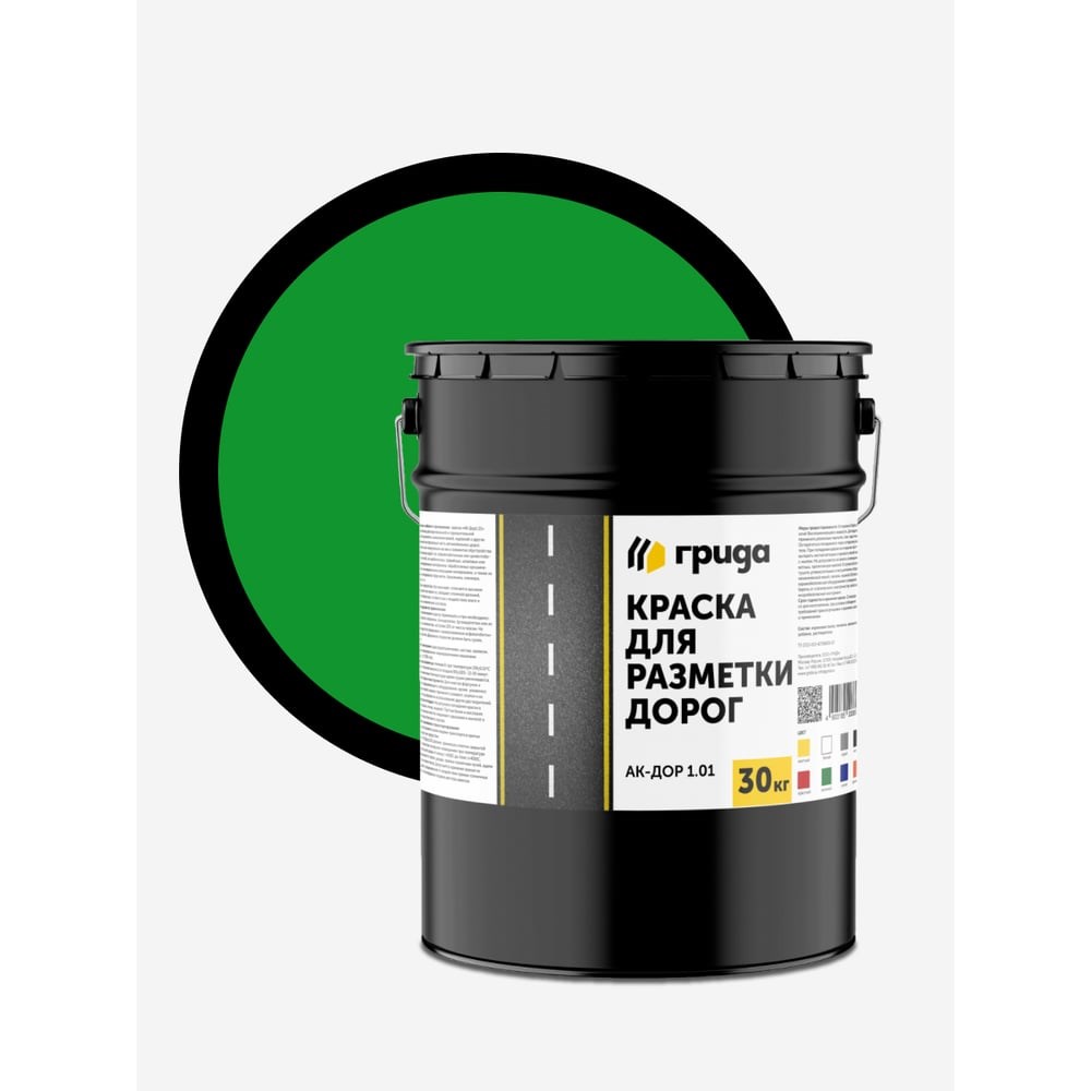 Краска для разметки дорог АК-Дор 1.01 ГРИДА предназначена для нанесения линий, надписей и других обозначений основной разметки на проезжую часть автомобильных дорог с усовершенствованным (асфальтобетонным) покрытием, бордюры, элементы дорожных сооружений и обстановки дороги; для окраски цементно-бетонных поверхностей. Линейка АК-Дор 1.01 содержит максимальное количество акрилатного связующего и как следствие максимальную стойкость к истиранию.Свойства:Краска быстро высыхает, отличается высоким уровнем светостойкости и коэффициентом яркости, что служит гарантией видимости разметки в любое время суток. Кроме того, обладает отличной адгезией, износостойкостью, стойкостью к воздействию влаги и различных химических составов.Характеристики:Время высыхания при температуре (20±0,5)ºС и относительной влажности воздуха (65±10)%- 10 минут. При пониженных температурах время сушки увеличивается.Долговечность нанесённой разметки, в зависимости от интенсивности движения.Износостойкость по методике ДорНИИ: 95%.Массовая доля нелетучих веществ: 75%.Расход 300 - 600 г/м2 на однослойное покрытие в зависимости от шероховатости и пористости поверхности, применяемого оборудования, квалификации персонала и других факторов.Степень перетира: 70 мкм.Стойкость покрытия к воздействию 3%-го раствора хлористого натрия.Стойкость покрытия к статическому воздействию воды.Условная вязкость (определяется вискозиметром типа ВЗ-246, с диаметром сопла 4 мм, при температуре 20 °С): 55 секунд.