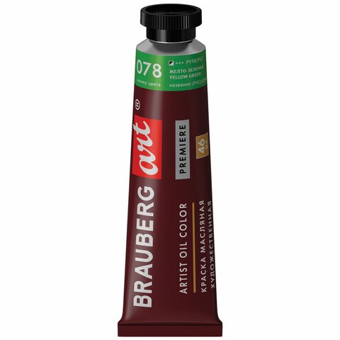 Краска масляная художественная BRAUBERG ART PREMIERE, 46 мл, проф. серия, ЖЕЛТО-ЗЕЛЕНАЯ, 191453