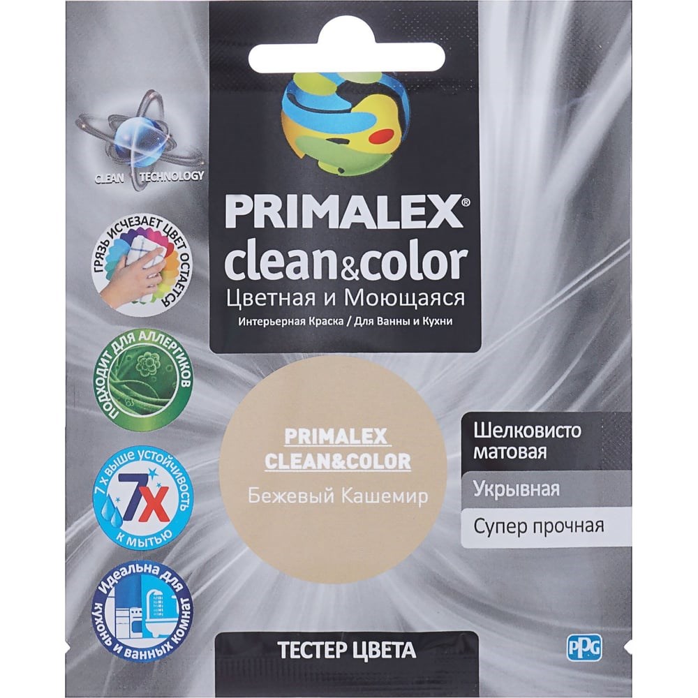 Краска PRIMALEX Clean&Color Бежевый Кашемир PMX-CC3 имеет высокую укрывистость, легко моется, не выцветает, не имеет запаха, паропроницаема, обеспечивает биозащиту. Краска подойдет для использования со следующими основаниями: бетон, кирпич, обои, окрашенная поверхность, оштукатуренная поверхность.