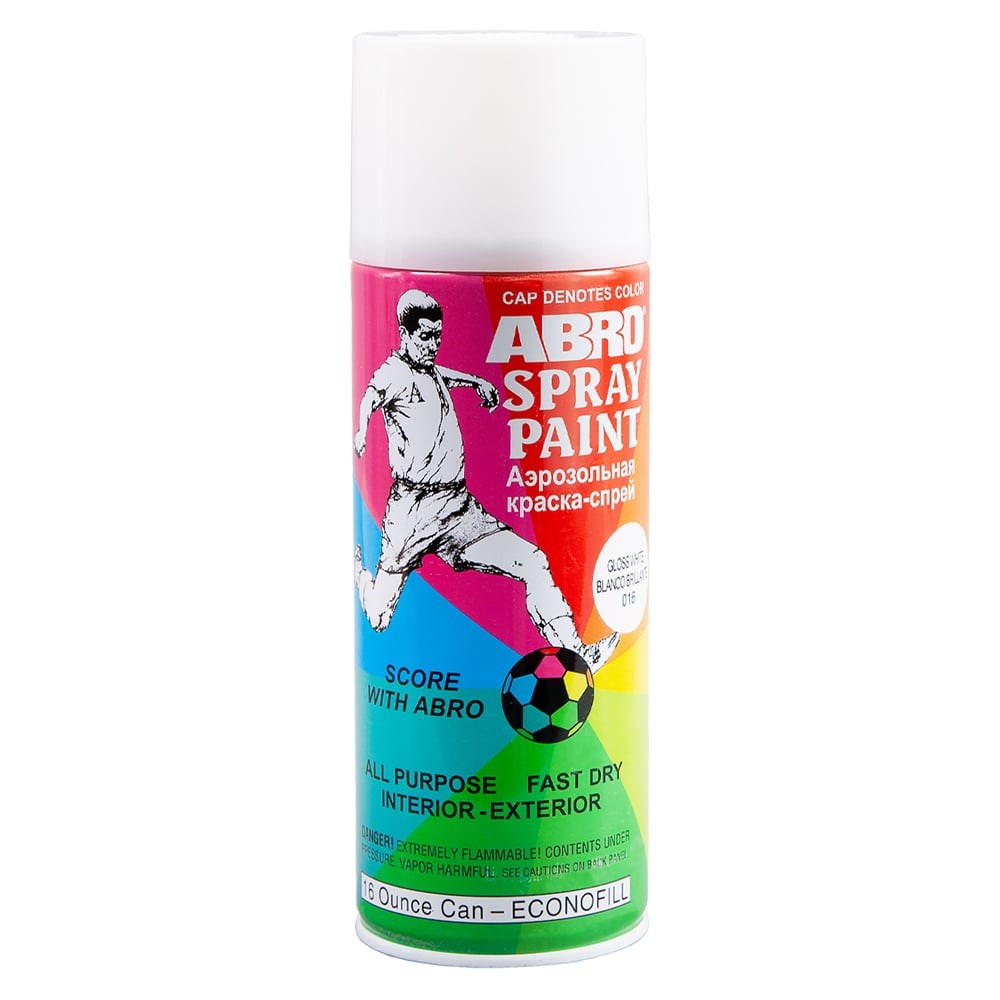 Краска-спрей ABRO MASTERS № 16 белый глянец, 400 мл SP-016 применяется для окрашивания металлических, деревянных поверхностей, а также для пористых материалов (кирпич, бетон рекомендуют предварительно обработать водоэмульсионной краской). Используют для внутренних и наружных работ. Благодаря составу, продукт создает покрытие сочного и яркого цвета.