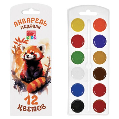 Краски акварельные FORUM "Зверята" 12 цветов, медовые, круглые кюветы, картонная коробка, FA-EV-012E