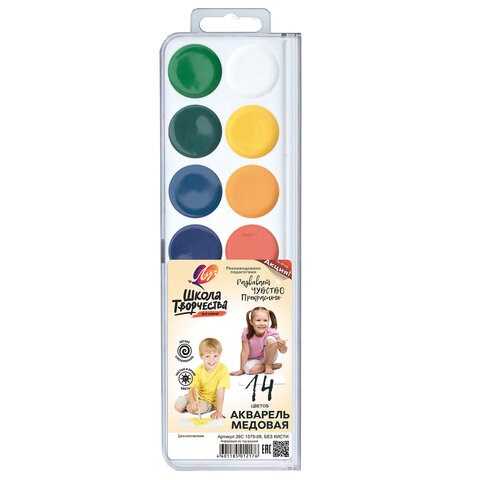 Краски акварельные ЛУЧ "Школа творчества", 14 цветов, медовые, без кисти, пластиковая коробка, 29С 1757-08