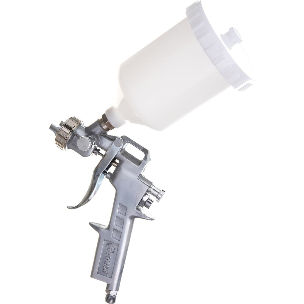 Краскопульт REMIX S-990G 1,5мм, верхний бачок, 600мл RM-S-990G-15 имеет конвенциональную систему распыления с верхним бачком. Рекомендуется для нанесения 1K синтетической эмали, грунта, жидкой шпатлевки, 2К акриловых красок и лаков. Металлический корпус защищает краскопульт от механических повреждений.