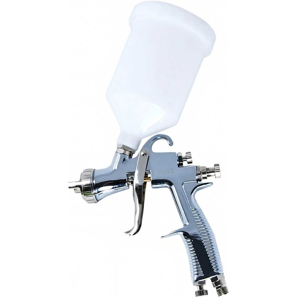 Краскопульт для покраски авто на базе технологии LVLP (Low Volume Low Pressure). В технологии распыления LVLP используется давление в воздушной головке менее 0.7 бар, что ниже давления, применяемого в технологии HVLP. Конструкция краскопульта обеспечивает плавную регулировку расхода материала, форму факела и давление воздуха на входе. Предназначен для нанесения любых лакокрасочных покрытий. Большой выбор сменных комплектов, включающих дюзу, воздушную головку и окрасочную иглу, позволяет наносить широкий спектр материалов. Превосходная точность изготовления дюзы, воздушной головки и иглы краскопульта гарантирует высокое качество покрытия. Сменный комплект целиком изготовлен из нержавеющей стали, что гарантирует долговечность и отсутствие коррозии. Окрасочный пистолет имеет эргономичную конструкцию рукоятки для комфортной работы. Дополнительные характеристики: Резьба бачка: М16х1.5 внутренняя Входной штуцер: резьба 1/4"