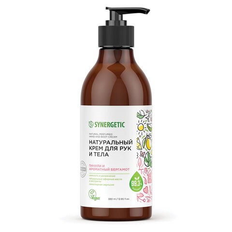 Крем для рук и тела 380 мл, SYNERGETIC "Пачули и ароматный бергамот", натуральный, 300009/6