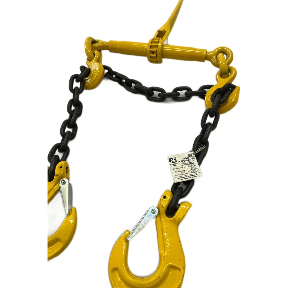 Цепь крепежная предназначена для крепления и фиксации различных грузов и техники при транспортировке на судах и автомобильном транспорте. Крепежные цепи представляют собой отрезок высокопрочной грузовой круглозвенной цепи 8 или 10 класса прочности с крюками на концах. Цепь крепежная применяется с талрепом цепным с храповым механизмом, который используется для натяжения цепи. Чаще всего грузы на трале закрепляют крепежными цепями различной длинны, которые стягиваются с помощью талрепов.