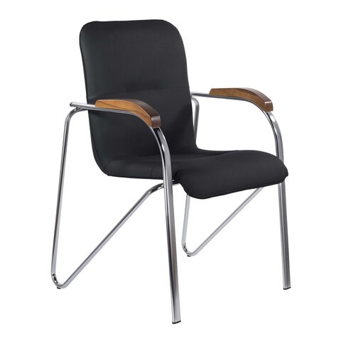 В отличие от своих аналогов, "Samba" марки BRABIX отличается более аккуратным исполнением. Чехол плотно обтягивает монолитный каркас из утолщенной 7-слойной фанеры. Плотность набивки также увеличена, что продлевает срок службы изделия. Материал - пенополиуретан (жесткость - 24, плотность - 18 кг/м3). Хромированная металлическая рама способна выдержать нагрузку 120 кг. Передние ножки - плоскоовальная труба сечением 30х15 мм и толщиной стенки 1,2 мм. Задние опоры - круглая труба диаметром 16 мм, толщиной стенки 1,2 мм. Подлокотники имеют накладки из натурального дерева, покрытого полиуретановым лаком. Кресла можно штабелировать до 5 штук в стопке.